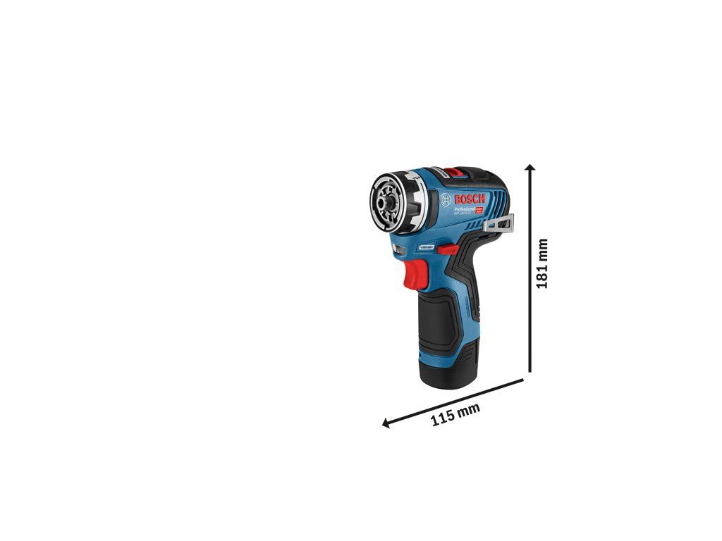 Akumulátorový vrtací šroubovák GSR 12V-35 FC, Akumulátorový vrtací šroubovák GSR 12V-35 FC Professional s bezuhlíkovým motorem je nejvšestrannější nářadí na jakoukoli práci v kategorii 12V nářadí. FlexiClick System obsahuje čtyři nástavce (10mm vrtací sklíčidlo, uzamykatelný držák bitů, pravoúhlý nástavec a excentrický nástavec), které lze snadno vyměňovat, kombinovat a upravovat, díky čemuž nabízí až osm konfigurací pro co nejvyšší flexibilitu. Mimořádně kompaktní a vysoce účinné nářadí s výkonem 35 Nm a 1 750 ot/min zajišťuje optimální manipulaci a dokonale se hodí k práci na těžko přístupných místech. Bezuhlíkový motor spolu s funkcí Electronic Motor Protection brání přetížení a zaručuje delší životnost nářadí. Nářadí se perfektně hodí na vrtání a šroubování do dřeva (32 mm) a oceli (10 mm). Je kompatibilní se všemi akumulátory a nabíječkami Bosch Professional 12V. GSR 12V-35 FC Professional je také vybaven 2rychlostní převodovkou, automatickým zámkem, sponou/hákem na opasek, držákem bitů, indikátorem úrovně nabití, elektronickou ochranou článků, LED světlem, Li-ion, kovovou převodovkou, pravým/levým chodem a volbou rychlosti. L-BOXX 102 (1 600 A01 2FZ); Nástavec s vrtacím sklíčidlem GFA 12-B (1 600 A00 F5H); Nástavec s držákem bitů GFA 12-X (1 600 A00 F5J); Pravoúhlý nástavec GFA 12-W (1 600 A00 F5K); Excentrický nástavec GFA 12-E (1 600 A00 F5L); Rychlonabíječka GAL 12V-40 Professional (1 600 A01 9R3); 2× akumulátor GBA 12V 3.0Ah (1 600 A00 X79)Doplňkové parametry