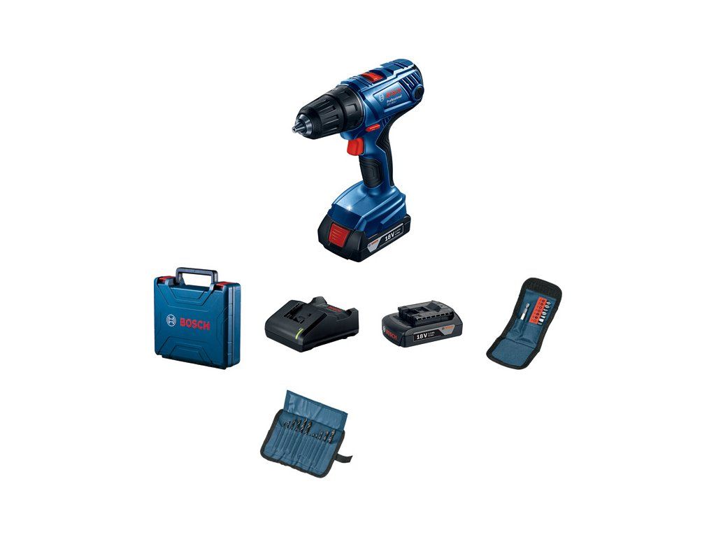 Akumulátorový vrtací šroubovák GSR 180-LI, GSR 18V-21 Professional je spolehlivý základní akumulátorový vrtací šroubovák v kategorii 18V nářadí od společnosti Bosch. Jeho tuhý krouticí moment 55 Nm poskytuje výkon potřebný pro základní vrtací a šroubovací aplikace. Spolehlivý a odolný vrtací šroubovák poskytuje profesionální kvalitu pro každodenní použití díky celokovové převodovce a elektronické ochraně článků. Profesionální design s rychloupínacím sklíčidlem o průměru 13 mm navíc umožňuje kvalitní práci. Toto nářadí je určeno k vrtání do dřeva o maximálním průměru 35 mm, do oceli do 13 mm a pro šrouby s průměrem do 10 mm. Je kompatibilní se všemi 18V akumulátory a nabíječkami Bosch Professional (profesionální 18V systém). GSR 18V-21 Professional je také vybaven 2rychlostní převodovkou, automatickým zámkem, LED světlem, Li-ion akumulátorem a pravým/levým chodem. Příruční kufr; 23dílná sada vrtacích a šroubovacích bitů s držákem; Nabíječka GAL 18V-20 Professional; 2× akumulátor GBA 18V 2.0Ah (číslo náhradního dílu 1 617 B00 0BJ)Doplňkové parametry