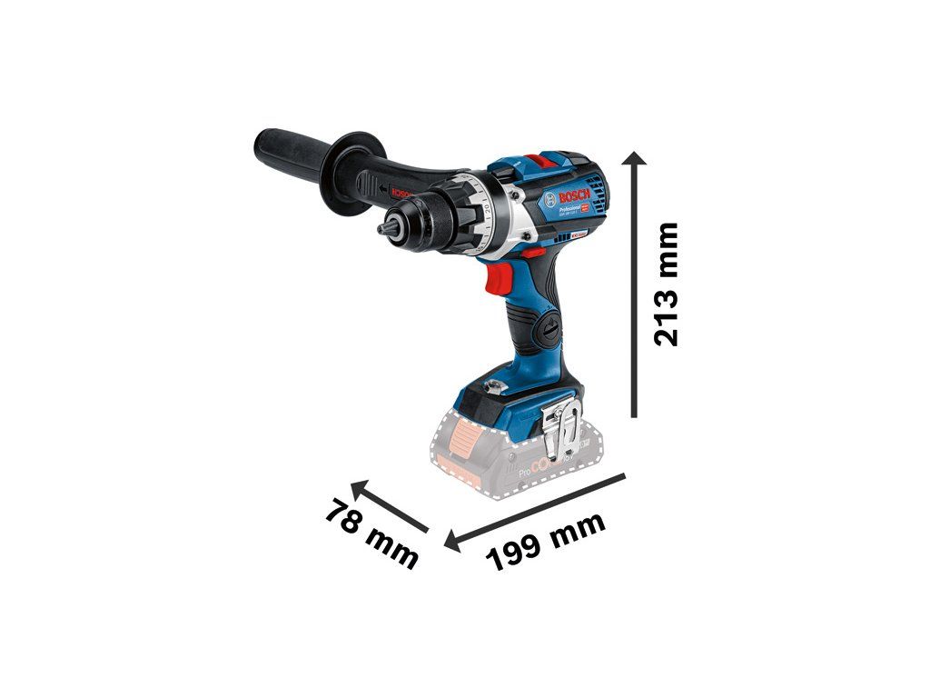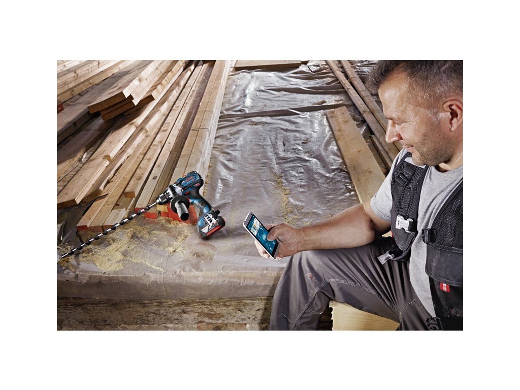 Akumulátorový vrtací šroubovák GSR 18V-110 C, GSR 18V-110 C Professional je mimořádně výkonný a robustní akumulátorový vrtací šroubovák s bezuhlíkovým motorem v kategorii 18 V od společnosti Bosch. Díky maximálnímu krouticímu momentu 110 Nm a bezuhlíkovému motoru je nářadí mimořádně silné. Vrtací šroubovák je díky celokovovému sklíčidlu vysoce odolný a schopný zvládat i ty nejnáročnější práce na staveništi. Dále nabízí funkci Bluetooth Connectivity pro přímé připojení k chytrému telefonu pro další způsob ovládání nářadí. Toto nářadí je určeno k vrtání do dřeva o maximálním průměru 82 mm, do oceli do 13 mm a pro šrouby s průměrem do 12 mm. Je kompatibilní se všemi 18V akumulátory a nabíječkami Bosch Professional (Flexible Power System). GSR 18V-110 C Professional je také vybaven 2rychlostní převodovkou, automatickým zámkem, funkcí KickBack Control, Electronic Motor Protection, rukojetí, Li-ion a přesnou spojkou. Kompatibilní s profesionálním 18V systémem Bosch a aliancí akumulátorů různých značek AMPShare. Přídavná rukojeť (1 602 025 07X); Kartonová krabiceDoplňkové parametry