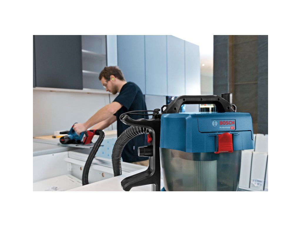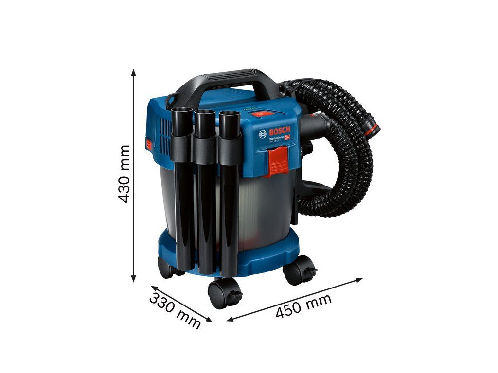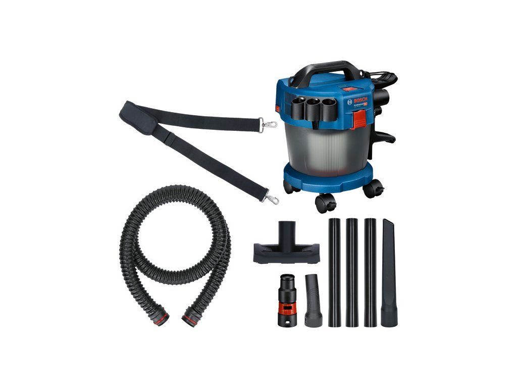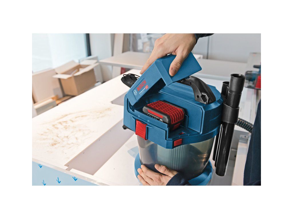 Akumulátorový vysavač GAS 18V-10 L, Toto je akumulátorový 18V vysavač třídy L Bosch s plnou sací silou. Vyznačuje se technologií rotačního proudění vzduchu, která zabraňuje ucpávání filtrů a zajišťuje trvalou a kontinuální sací sílu. Lehké a kompaktní provedení vysavače umožňuje snadnou přepravu a skladování. Díky bezsáčkovému provedení a mnoha kusům příslušenství (součástí balení) je ideální na různé způsoby suchého i mokrého sání. Je kompatibilní se systémem Bosch Click & Clean i se všemi akumulátory a nabíječkami Bosch Professional 18V (profesionální 18V systém). Kompatibilní také s AMPShare, aliancí akumulátorů více značek. Toto nářadí má HEPA filtr a je zařazen do třídy L v souladu s normami EU. 1× hadice 1,6 m (2 608 000 658); 1× trubkové koleno (2 608 000 659); 3dílná sada odsávací hubice (2 608 000 660); 1× štěrbinová hubice, 250 mm (2 608 000 661); 1× plochý skládaný filtr (2 608 000 663); 1× podlahová hubice (2 608 000 707); 1× adaptér na elektrické nářadí (2 608 000 708); 1× ramenní popruh (2 608 000 706); 4dílná sada otočných koleček (2 608 000 705); Kartonová krabiceDoplňkové parametry