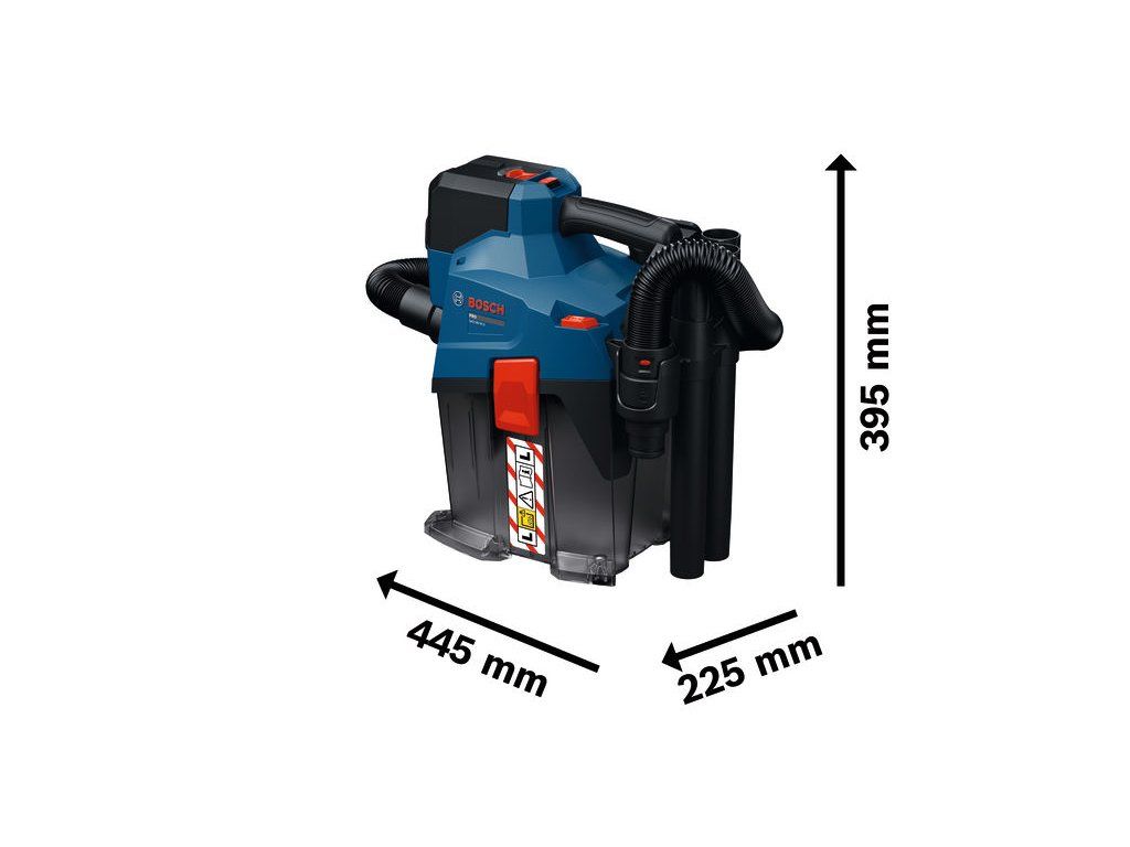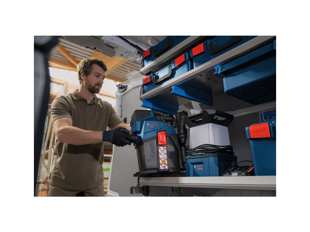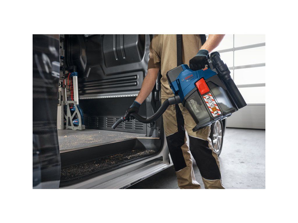 Akumulátorový vysavač GAS18V-6LS, Akumulátorový vysavač PRO GAS18V-6LS zaručuje ochranu proti prachu třídy L. Ergonomicky navržená rukojeť vysavače, popruh na přenášení a kompaktní, lehká konstrukce umožňují skvělé přenášení. Díky četnému příslušenství je ideální pro různé suché aplikace. Veškeré přiložené příslušenství lze uložit přímo na vysavač, takže máte správné příslušenství ihned po ruce. Vysavač je vybaven ekologickým režimem pro delší dobu chodu na jedno nabití akumulátoru, režimem Boost pro maximální sací výkon a funkcí foukání (foukací hadice je k dispozici jako příslušenství, není součástí dodávky). Je kompatibilní se systémem Bosch Click & Clean. Kompatibilní s profesionálním 18V systémem Bosch a aliancí akumulátorů různých značek AMPShare. Poloautomatické čištění filtru se aktivuje pouhým stisknutím spínače, což zajišťuje dlouhou životnost filtru a nářadí. Vysavač je dodáván s prodlužovací hadicí o délce 0,5–2,8 m s adaptérem Click & Clean pro dosah do jakékoliv pracovní oblasti Kartonová krabice; Adaptér pro elektrické nářadí (1 600 A03 BT6); Hadice (1 600 A03 959); Rohová trubka (1 600 A03 946); Štěrbinová tryska (1 600 A03 943); Podlahová hubice (1 600 A03 942); 3× trubka (1 600 A03 947); Držák příslušenství (1 600 A03 941); Sáček na prach (1 605 411 03X)Doplňkové parametry