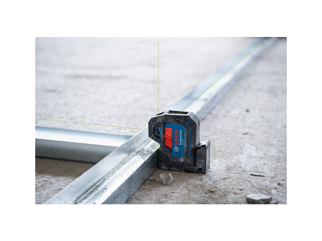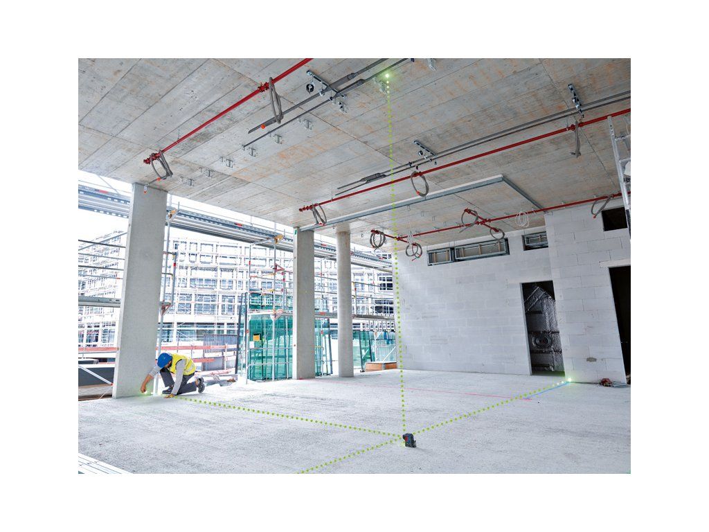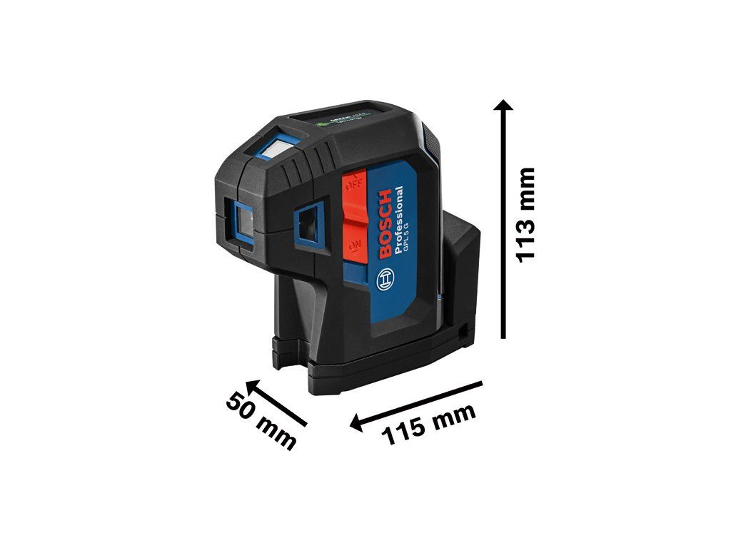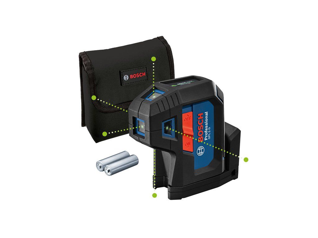 Bodový laser GPL 5 G, Pětibodový laser GPL 5 G Professional vyniká svou odolnou a kompaktní konstrukcí, díky které je ideální volbou při stavbě vzájemně kolmých stěn. Zelené laserové body poskytují až čtyřikrát lepší viditelnost oproti červeným bodům. GPL 5 Professional se svým pogumovaným krytem, zapuštěným sklíčkem a stupni krytí IP 65 proti prachu a stříkající vodě odolá drsným podmínkám na pracovišti. Tento pětibodový laser je připraven na přepravu během chvilky, a to díky integrovanému otočnému držáku se silnými magnety pro rychlé a bezpečné upevnění nářadí. GPL 5 G Professional je ideální na stavbu vzájemně kolmých příček a pro přenášení bodů z podlahy na strop. Je vhodné například na instalaci rozvodů či stavbu konstrukcí pro sádrokartonové stěny. Tento pětibodový laser se rovněž pyšní intuitivním rozhraním s dvoupolohovým spínačem: Je-li zapnutý, přístroj se automaticky samoniveluje, je-li vypnutý, zaaretuje se kyvadlo. Taška; 2× baterie 1,5 V LR6 (AA)Doplňkové parametry
