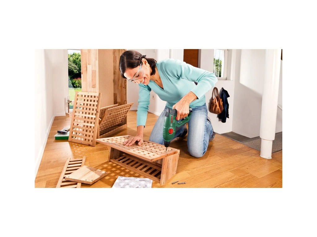 - Kladivo, vrtačka a šroubovák na beton, zdivo, dlaždice, dřevo a kov