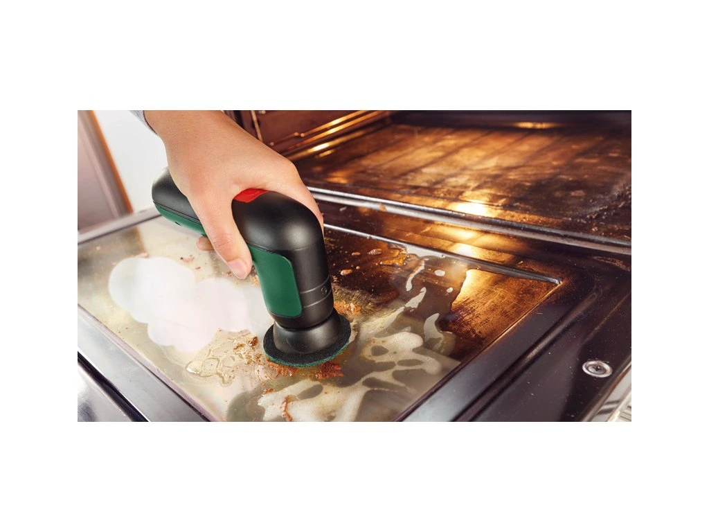- Drhne různé druhy povrchů, jako jsou obklady v koupelně, kuchyňské plotny, hrnce a pánve