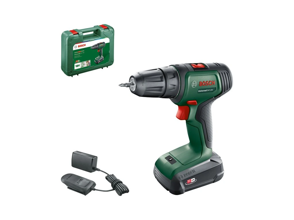 Vysoce kvalitní Bosch Akumulátorový vrtací šroubovák UniversalDrill 18V je profesionální nářadí pro přesné šroubování v domácnosti, dílně i na stavbě. Mimořádně tvrdá ocel a ergonomická rukojeť zajišťují vysoký krouticí moment a pohodlnou práci. Černý magnetický hrot usnadňuje manipulaci se šrouby a zvyšuje efektivitu práce.