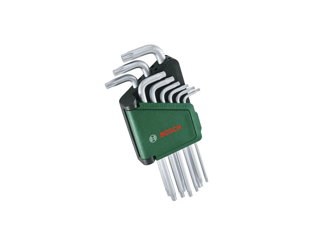 Vysoce kvalitní Bosch Ruční nářadí Sada 9 kusů klíčů Torx je profesionální nářadí pro efektivní práci s maticemi a šrouby. Jemné ozubení a ergonomická rukojeť zajišťují precizní práci a vysoký komfort. Robustní konstrukce z kvalitní oceli garantuje dlouhou životnost a spolehlivost i při náročném profesionálním použití.