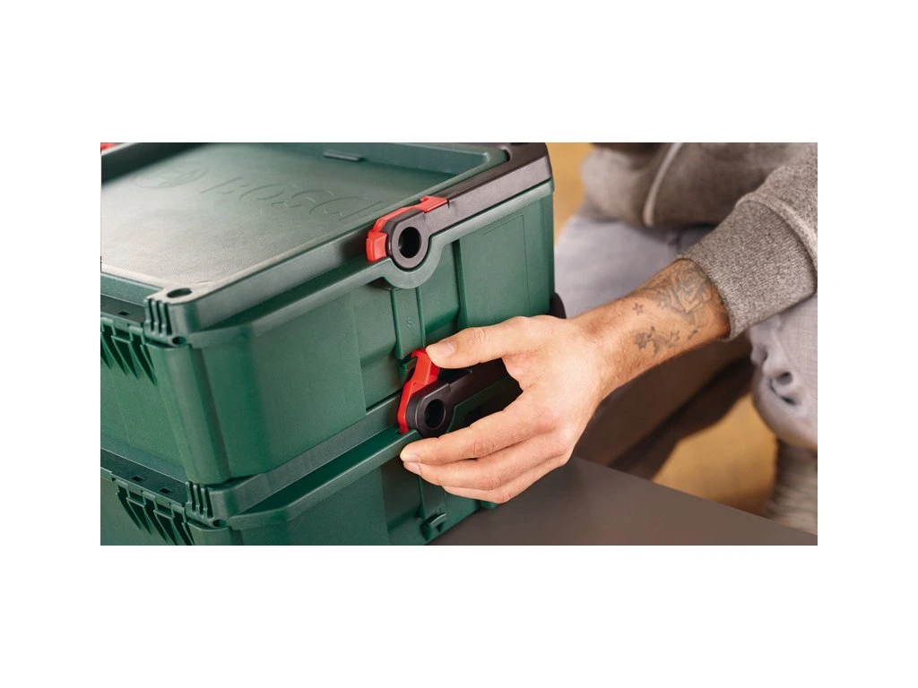 - Stohovatelné a propojitelné pro snadné přenášení více boxů SystemBox