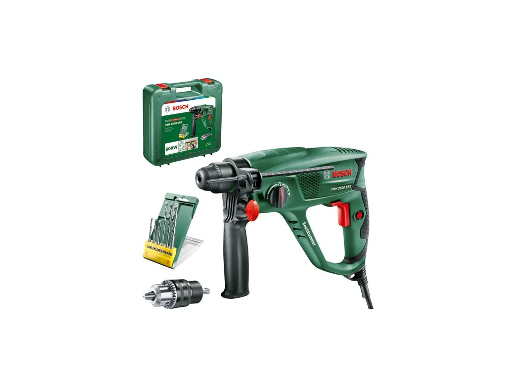 Robustní Bosch Vrtací kladivo PBH 2500 SRE je ideální volba pro náročné kutilské i profesionální použití. Vysoká kvalita materiálů a precizní zpracování zajišťují dlouhou životnost a spolehlivost při těžkých pracích. Ergonomický design a promyšlená konstrukce poskytují maximální komfort a bezpečnost během práce.
