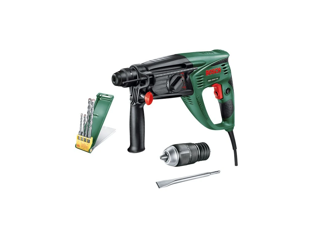 Robustní Bosch Vrtací kladivo PBH 3000 FRE je ideální volba pro náročné kutilské i profesionální použití. Vysoká kvalita materiálů a precizní zpracování zajišťují dlouhou životnost a spolehlivost při těžkých pracích. Ergonomický design a promyšlená konstrukce poskytují maximální komfort a bezpečnost během práce.