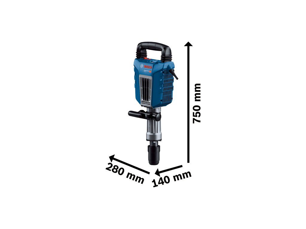 Bourací kladivo GSH 14 C, GSH 14 C Professional je šampionem v účinnosti prorážení díky své vysoké intenzitě a rychlosti příklepu. Bourací kladivo je ideální na opravné práce ve vyztužených betonových nosnících a trámech, prorážení betonových a cihlových tvárnic a rozrušování betonových a asfaltových povrchů. Patentovaná technologie bezuhlíkového motoru Bosch umožňuje delší životnost a práci bez jisker a funkce Auto-Gear-Rotation zajišťuje delší životnost převodovky. HMI a konektivita uživatelům pomáhají porozumět využití nářadí a plánovat preventivní údržbu pro předcházeni nečekaným odstávkám. GSH 14 C Professional je silné a odolné bourací kladivo s velkou intenzitou příklepu a vysokou rychlostí na prorážení zdiva, asfaltu a betonu. Patentovaná technologie bezuhlíkového motoru Bosch a funkce Auto-Gear-Rotation umožňují delší životnost. HMI a konektivita uživatelům pomáhají porozumět využití nářadí a plánovat preventivní údržbu pro předcházeni nečekaným odstávkám. 1× špičatý sekáč, 22mm šestihranná stopka, 400 mm (2 608 690 188); Tuba s mazacím tukem (číslo náhradního dílu 1 615 430 010); Čisticí hadřík (1 619 P15 281); Přídavná rukojeť (1 619 P17 704); Příruční kufr (6 035 970 999)Doplňkové parametry