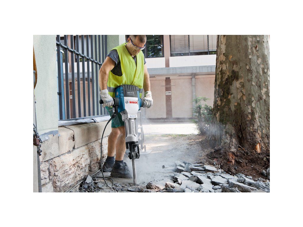Bourací kladivo GSH 27 VC, GSH 27 VC Professional s funkcí Vibration Control je univerzální silák z řady síťových bouracích kladiv Bosch. Jeho extrémně výkonný motor umožňuje dodávat energii příklepu 62 J a poskytuje nejvyšší možný sekací výkon v rámci řady Bosch. Bourací kladivo se rovněž pyšní velkou odolností díky svým mimořádně robustním kovovým dílům. Kromě toho funkce Vibration Control zajišťuje pohodlnou manipulaci a snižuje únavu uživatele při časově náročných aplikacích. Toto nářadí je ideální na sekání do betonu a kamene. Je kompatibilní s nástavcem na odsávání prachu GDE hex Professional. GSH 27 VC Professional má také protiskluzový povrch, který zabraňuje sklouznutí nářadí z nakloněné plochy.Doplňkové parametry