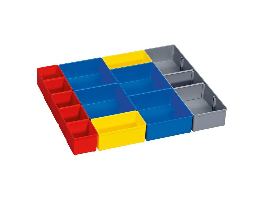 Boxy k uložení malých dílů 12dílná sada vložek do i-BOXX 53, 12dílná sada vkládacích boxů i-BOXX 53 nabízí flexibilní úložné prostory v souladu se systémem Bosch Mobility System. Jasný přehled a ideální organizaci umožňuje speciální uspořádání 12 barevných boxů v různých velikostech pro uložení drobných předmětů, jako je příslušenství nebo spotřební materiál. Sada vložených boxů je vhodná pro i-BOXX 53 a nabízí nejvyšší flexibilitu při skladování.Doplňkové parametry