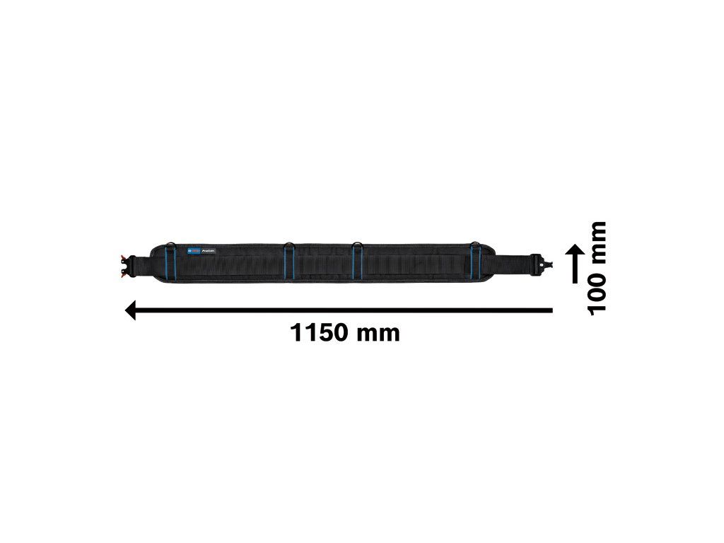 Brašna na nářadí Belt 93, Perfektně padnoucí a maximálně poddajný opasek na nářadí Bosch Professional 93 poskytuje vyšší pohodlí při přenášení nářadí na pracovišti. Opasek na nářadí nabízí vysokou ergonomii díky integrované polstrované vložce opasku. D-kroužky umožňují použití ramenních popruhů pro větší flexibilitu. Konstrukce opasku na nářadí umožňuje připevnění všech držáků ProClick a opaskových pouzder. S opaskem na nářadí ProClick belt 93 je nošení nářadí na staveniště ergonomičtější a pohodlnější. Lehký polyester 1000D a vycpaná podšívka pásku zaručují vyšší úroveň pohodlí. Systém Bosch Professional ProClick umožňuje snadné připojování, výměnu a úpravu pouzder na pásku bez nutnosti jej sundávat.Doplňkové parametry