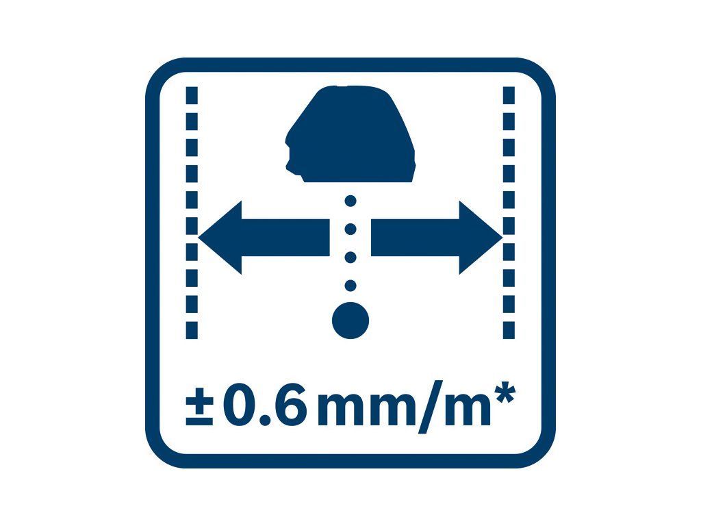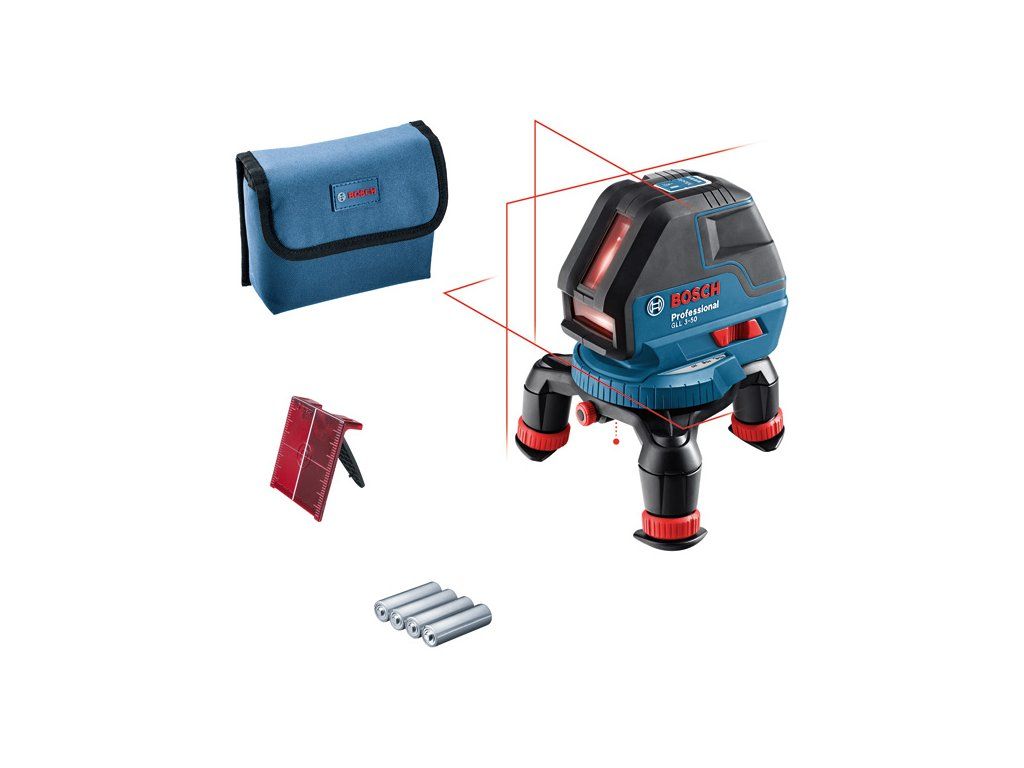 Čárový laser GLL 3-50, Usnadnění složité nivelace – křížový čárový laser GLL 3-50 Professional se snadno používá a je všestranný při všech běžných nivelačních a přenosových pracích. Dvě vertikální laserové čáry, jedna horizontální laserová čára a kolmý bod usnadňují neuvěřitelně širokou škálu prací. GLL 3-50 Professional s kompaktní konstrukcí nabízí pohodlné ovládání a kontrolu. Pro pohodlné nastavení laserové čáry se dodává s otočným ministativem s nastavitelnou výškou a jemným seřízením vertikální čáry. Hodí se na různé použití v interiéru, například při montáži polic, oken či odpadního potrubí nebo při obkládání. Druhá vertikální laserová čára je ideální na rychlé zarovnávání do čtverce. GLL 3-50 Professional nabízí laserové čáry s pracovním dosahem až 10 m, který lze pomocí volitelného laserového přijímače LR 2 Professional prodloužit až na 50 m. Dosah kolmého bodu je až 5 m. Tento křížový čárový laser se samoniveluje za méně než 4 sekundy. Je robustní a pyšní se stupněm ochrany IP54 proti prachu a stříkající vodě. Cílová destička laseru; Vložka na nářadí pro L-BOXX; Ochranné pouzdro; 4× baterie 1,5 V LR6 (AA)Doplňkové parametry