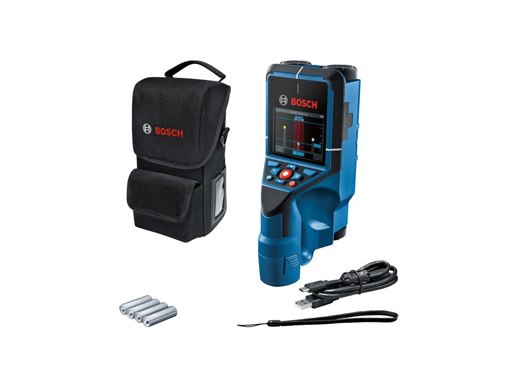 Detektor Detektor D-tect 200 C, D-tect 200 C Professional detekuje všechny běžné předměty a jasně je zaznamená, a usnadňuje tak dokumentaci. Je vybaven technologií Bosch Radar Technology s vylepšeným uživatelským rozhraním, díky čemuž zajišťuje bezpečnější a přesnější stavební práce. Několik různých náhledů umožňuje výběr té nejlepší možnosti při jednotlivých způsobech použití, například bodového zobrazení, které usnadňuje zejména detekci na těžko přístupných místech. Inovativní funkce snímků obrazovky detektoru umožňuje rychlou dokumentaci a poskytuje spolehlivé důkazy. D-tect 200 C Professional je vhodný na práci v interiéru i exteriéru, předchází poškození během vrtání a měří hloubku betonu. Detektor odhaluje předměty až 20 cm pod povrchem a zaznamená i hloubku, ve které se nachází. Taška; 4× baterie 1,5 V LR6 (AA); Adaptér na akumulátor (1600A017HF/1600A017HH); Kabel USB-C®; Poutko na zápěstíDoplňkové parametry