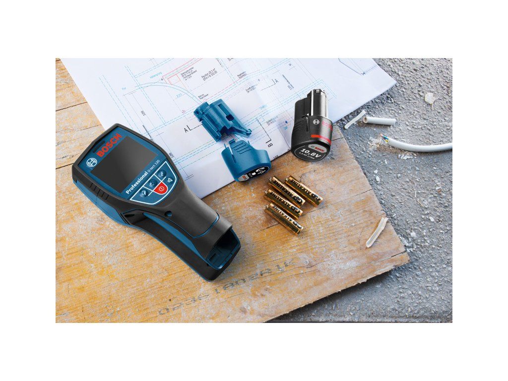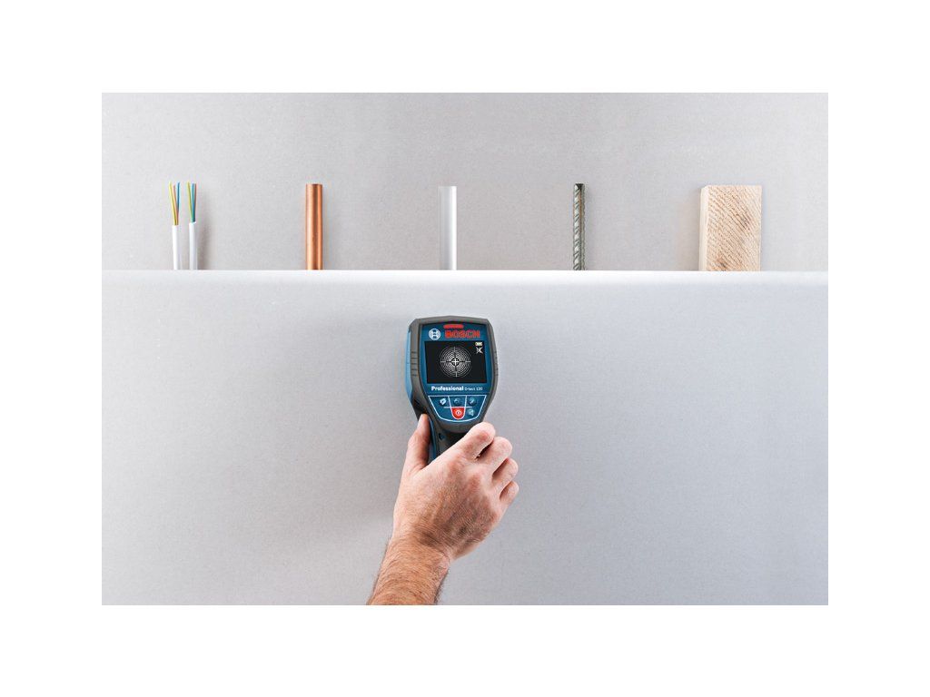 Detektor Wallscanner D-tect 120, Detektor D-tect 120 Professional je intuitivní radarový skener pro téměř všechny materiály. Bodové měření umožňuje přesnou lokalizaci na úzkých plochách a funkce lokalizace středu zobrazuje přesnou polohu středu objektu. Technologie s duálním zdrojem napájení navíc umožňuje použití s akumulátorem 12 V Li-ion nebo běžnými alkalickými bateriemi. Hodí se pro řadu kutilských disciplín, např. při lokalizaci vodovodního potrubí či rozvodů i jako pojistka, aby nedošlo k nehodě při vrtání při stavebních, instalatérských, elektrikářských a topenářských pracích. D-tect 120 Professional nabízí jednoduché uživatelské rozhraní se třemi intuitivními tlačítky pro seřízení podle různých druhů použití a dokáže detekovat objekty v hloubce až 12 cm. Zvukové a vizuální signály informují uživatele o detekci objektů ve zdi. L-BOXX 136 (1 600 A01 2G0); Karta se stručným návodemDoplňkové parametry