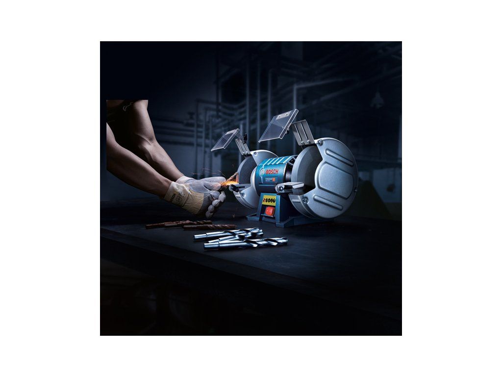Dvoukotoučová stolní bruska GBG 60-20, Dvoukotoučová stolní bruska GBG 60-20 Professional s výkonným 600W bezúdržbovým indukčním motorem zmákne i to nejnáročnější broušení, odjehlování i ostření v rozmanitých pracovních podmínkách. Robustní tělo z litého hliníku se zapouzdřenými kuličkovými ložisky zabraňuje pronikání prachu do motoru a zaručuje dlouhodobou účinnost. Pevná základna zajišťuje stabilitu této kompaktní brusky a tedy i hladký provoz. GBG 60-20 obsahuje beznástrojově nastavitelnou podložku pod obrobek, ocelové ochranné kryty a chrániče proti jiskrám. GBG 60-20 obsahuje beznástrojově nastavitelnou podložku pod obrobek, ocelové ochranné kryty a chrániče proti jiskrám. Brusný kotouč s normální zrnitostí, zrnitost 24; Brusný kotouč s normální zrnitostí, zrnitost 60Doplňkové parametry