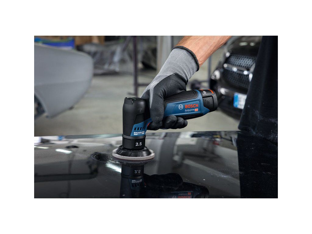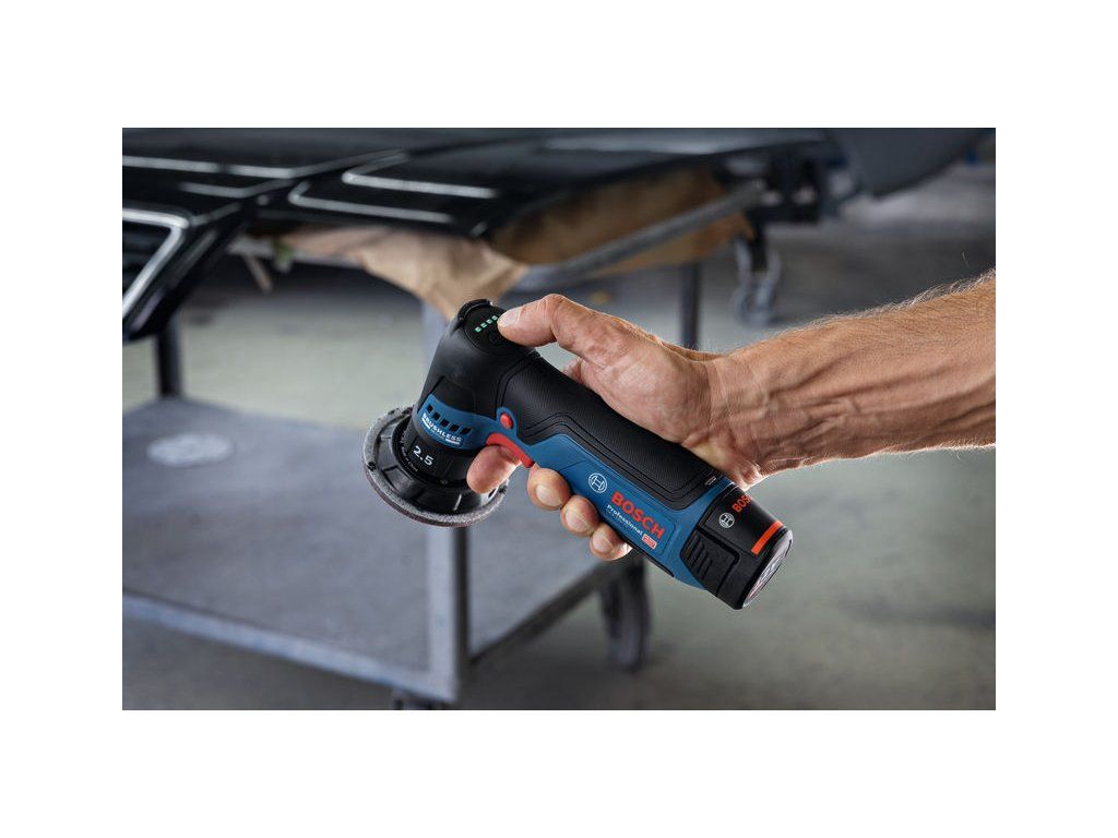 Excentrická bruska GEX 12V-77, GEX 12V-77 je akumulátorová vysoce výkonná bodová bruska s výkonným 12V systémem Bosch Professional a bezuhlíkovým motorem, na kterou se můžete spolehnout. Kompaktní nářadí se pohodlně používá a jeho vynikající ergonomie umožňuje efektivní přesné broušení bez únavy a snadno. A co víc, díky praktickým funkcím HMI lze vybrat a doladit úroveň rychlosti pomocí spouště s variabilním nastavením otáček a kontrolovat stav akumulátoru. GEX 12V-77 je určena na bodové broušení, opravy lakovaných ploch, povrchovou úpravu automobilů a broušení dřeva. Lze ji používat na suché i mokré broušení. Profesionální 12V systém je kompatibilní se všemi 12V akumulátory GBA. GEX 12V-77 má zdvih 2,5 mm s excentrickým pohybem a brusnou podložku o průměru 77 mm. Kartonová krabiceDoplňkové parametry