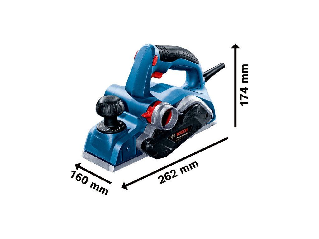 Hoblík GHO 20-82, Cenově dostupný přenosný hoblík GHO 20-82 kombinuje vysoké standardy kvality Bosch s ergonomickým designem, který umožňuje kontrolované hoblování pro hladkou povrchovou úpravu dřeva. Jeho kompaktní design s optimalizovaným těžištěm pomáhá předcházet namáhání zápěstí a zvyšuje pohodlí při používání. Nářadí je optimalizováno pro praváky i leváky a třísky lze odvádět z obou stran nářadí, aby se minimalizovalo rušení. S výkonem až 700 W dosahuje tento přenosný hoblík skvělé povrchové úpravy, a to i u velmi tvrdého dřeva. Montážní klíč (1 619 PB4 239); Sáček na prach (1 619 PC1 532); Boční doraz (1 619 PC2 774)Doplňkové parametry