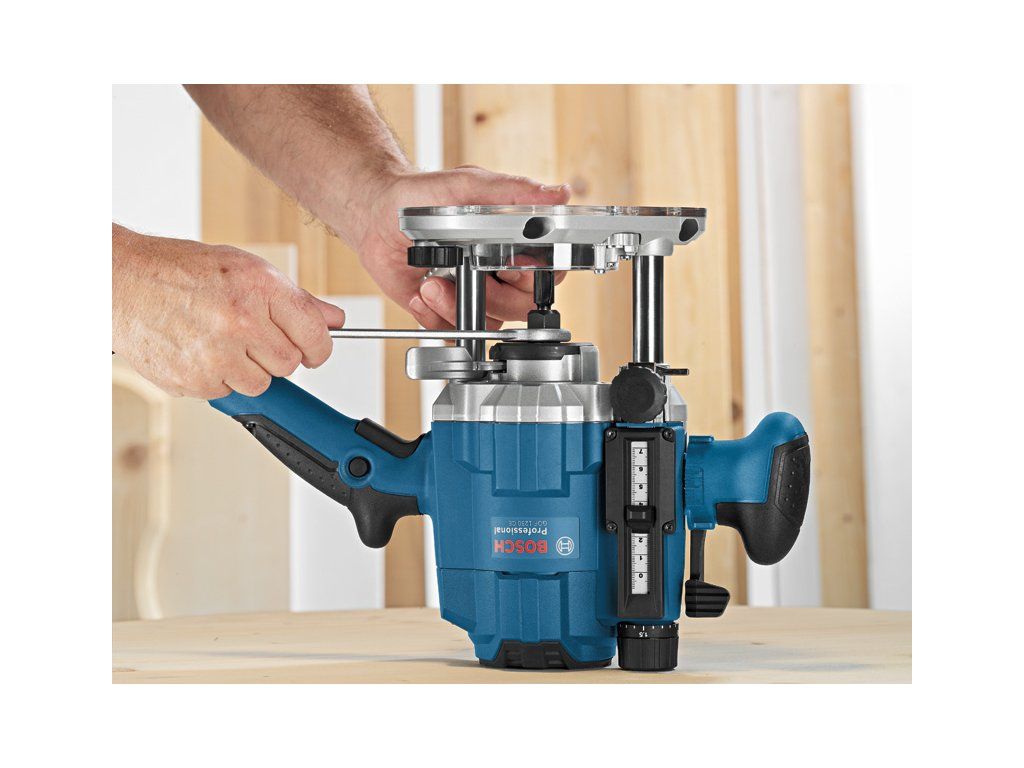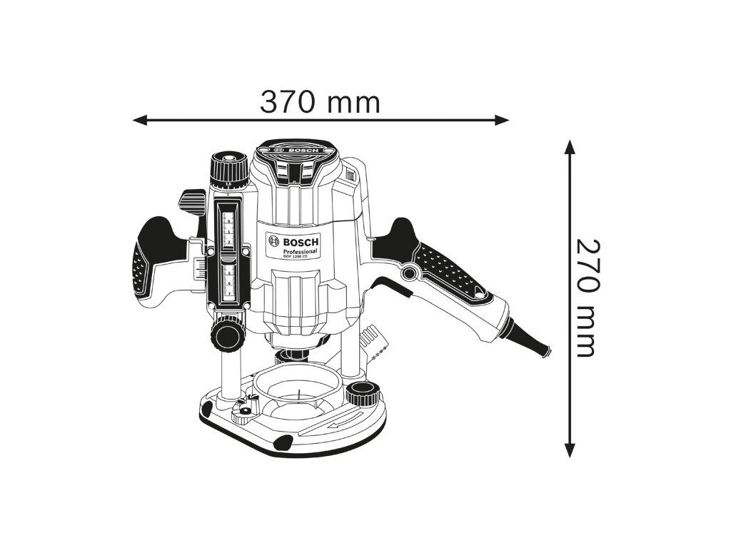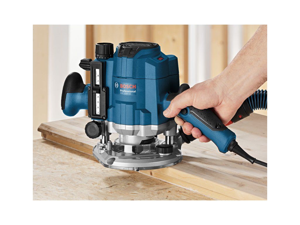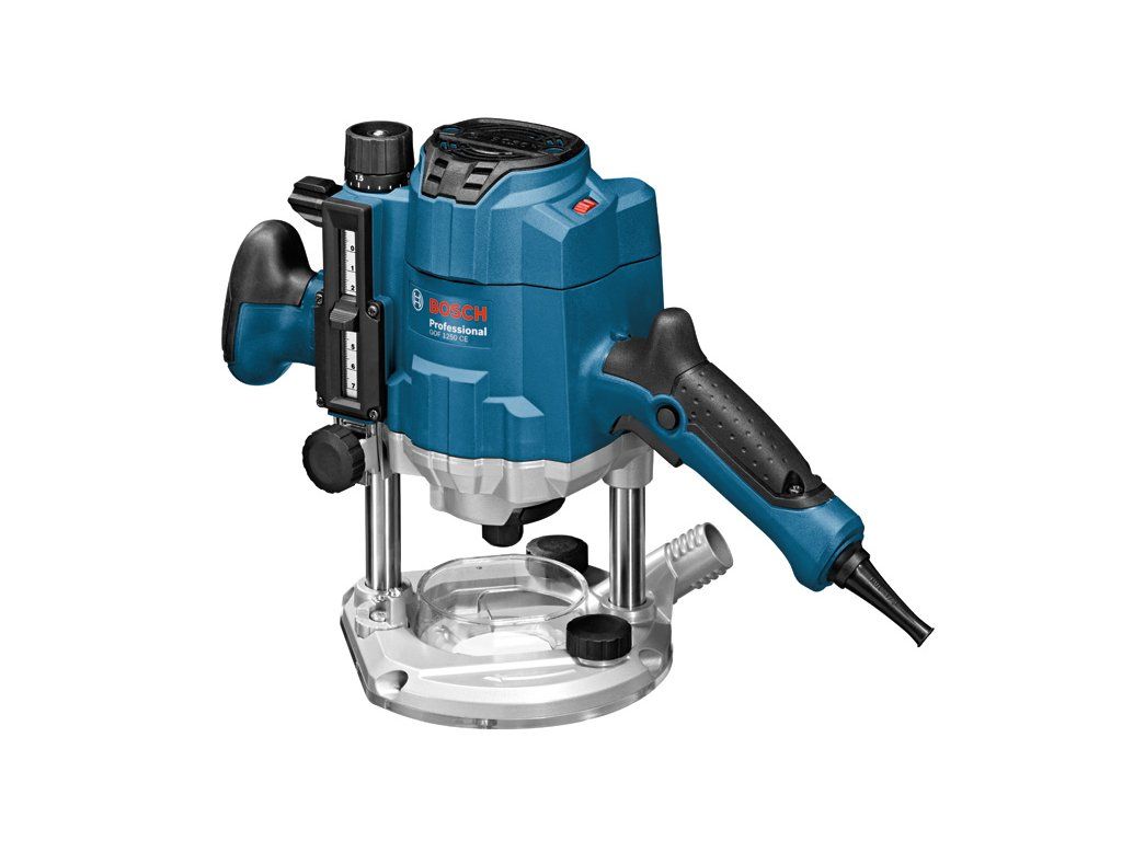 Horní frézka GOF 1250 CE, Síťová ponorná frézka GOF 1250 CE Professional umožňuje pohodlnou práci s výborným výkonem. Ergonomická rukojeť je navržena pro pohodlnou manipulaci bez ohledu na polohu úchopu, a poskytuje tak vynikající kontrolu nad nářadím. Patentované jemné nastavení frézky po krocích 1/10 mm zajišťují ideální regulaci hloubky. Jedinečný systém zámku vřetena navíc umožňuje rychlou výměnu příslušenství. Toto nářadí je určeno k frézování do dřeva a plastu. Je kompatibilní s různými vodicími lištami Bosch a systémem pro odsávání prachu Bosch Click & Clean. GOF 1250 CE Professional obsahuje také funkce, jako je Constant Speed a Speed Selection. Vidlicový klíč 19 mm (číslo náhradního dílu 1 907 950 511); Boční doraz s jemným nastavováním (2 607 001 387); Adaptér s kopírovací objímkou (číslo náhradního dílu 2 610 991 370); Upínací kleština s přesuvnou maticí 8 mm (2 608 570 102)Doplňkové parametry