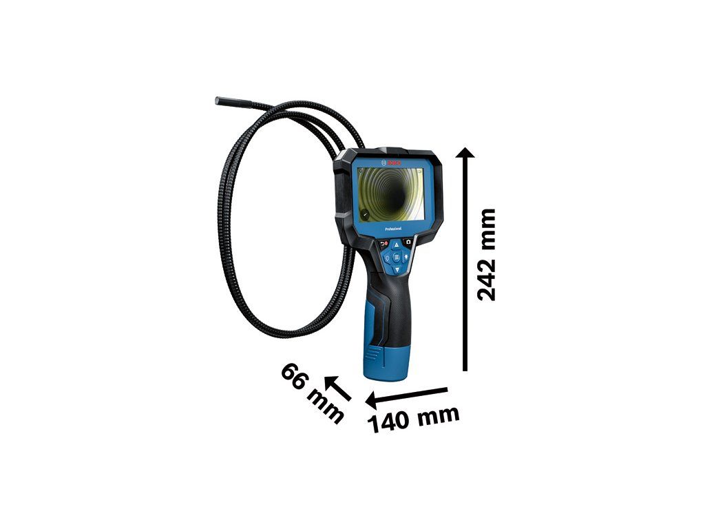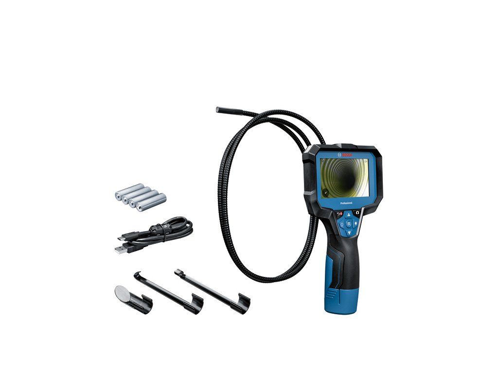 Inspekční kamera GIC 12V-4-23 C, Inspekční kamera GIC 12V-4-23 C Professional je ideální nářadí pro topenáře, instalatéry, automechaniky nebo elektrikáře. Je vybavena velkým 4,3" monitorem a jasným obrazem ve vysokém rozlišení 800 × 480 pixelů, což umožňuje rychlou a intuitivní analýzu potrubí, kanálů nebo jiných těžko přístupných míst. Orientaci obrazu snadno určíte díky praktické značce Up, která vždy směřuje nahoru. Tato ergonomická kamera s robustní konstrukcí je určena k použití na náročná pracoviště a do těžko přístupných míst. Hlava kamery nese stupeň krytí IP67, které ji chrání před prachem a krátkodobým ponořením do vody, a tělo nářadí má krytí IP54 proti prachu a stříkající vodě. Tato inspekční kamera je ideální pro řemeslníky na rozmanité práce, například na kontrolu vnitřních prostor rozvodných skříní, potrubí a dutin ve stěnách i na hydraulické systémy a použití v automobilovém průmyslu. Fotografie pořízené pomocí přístroje GIC 12V-4-23 C Professional se snadno přenáší přes kabel USB-C®. Kabel kamery pro GIC, průměr 8,3 mm, délka 1,5 m (1 600 A02 R6M); Hák, magnet, zrcátko; Kabel USB-C®; Adaptér na alkalické baterie AA1 (1 608 M00 C1B); 4× baterie 1,5 V LR6 (AA)Doplňkové parametry
