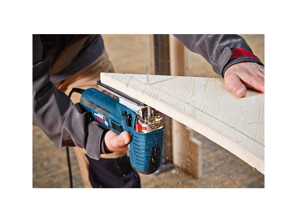 Kmitací pilka GST 160 CE, Síťová kmitací pila GST 160 CE Professional nabízí přesnost pro náročné aplikace. Kompaktní lehká konstrukce a úzký úchop poskytují optimální kontrolu a válcová rukojeť umožňuje plynulou práci i při řezání ze spodní strany. Patentovaný dvojitý váleček systému vedení kmitací pily snižuje ohýbání a zaručuje vynikající přesnost řezání. Spolehlivý 800W motor a konstantní otáčky zajišťují řezání i těch nejtvrdších materiálů. Toto nářadí je určeno pro zaoblené řezání pevného dřeva, dřevotřísky a dřevěných kompozit. Je kompatibilní s odsávacím systémem Bosch Click & Clean i s jinými vysavači Bosch a při použití adaptéru i s vodicími lištami. GST 160 CE Professional provádí také zkosené řezy a je vybavena ventilátorem, LED světlem, orbitálním pohybem, přesným ovládáním, volbou rychlosti a výměnou pilového plátku SDS bez použití nářadí. Adaptér na odsávání; L-BOXX 136 (1 600 A01 2G0); Ochrana proti vytrhávání třísek (2 601 016 096); 1× pilový plátek do kmitací pily T 144 DP, Precision for Wood (dostupné samostatně jako sada 3 ks: 2 608 633 A31); 1× pilový plátek do kmitací pily T 244 D, Speed for Wood (dostupné samostatně jako sada 3 ks: 2 608 630 879); 1× pilový plátek do kmitací pily T 308 BP, Precision for Wood (dostupné samostatně jako sada 3 ks: 2 608 667 399); 1/1 vložka pro L-BOXX, nářadí (1 600 A00 2UN)Doplňkové parametry