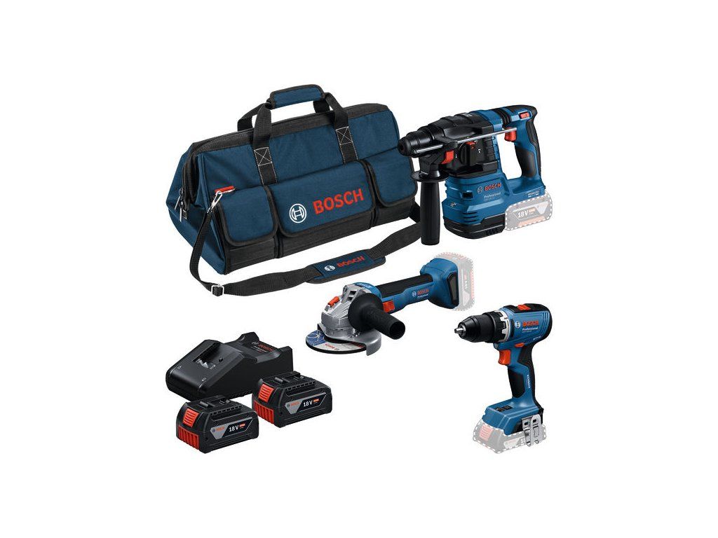 Kombinovaná sada Sad 3 ks 18V nářadí: GSR + GWS + GBH + 2× GBA 18V 4.0 Ah + GAL 18V-40; Perfektní kombinace profesionálního nářadí pro efektivní provedení práce.; 2× akumulátor GBA 18V 4.0Ah (1 600 Z00 038); Rychlonabíječka GAL 18V-40 Professional (1 600 A01 9RJ); Brašna na nářadí Bosch Professional, střední (1 600 A00 3BJ)Doplňkové parametry