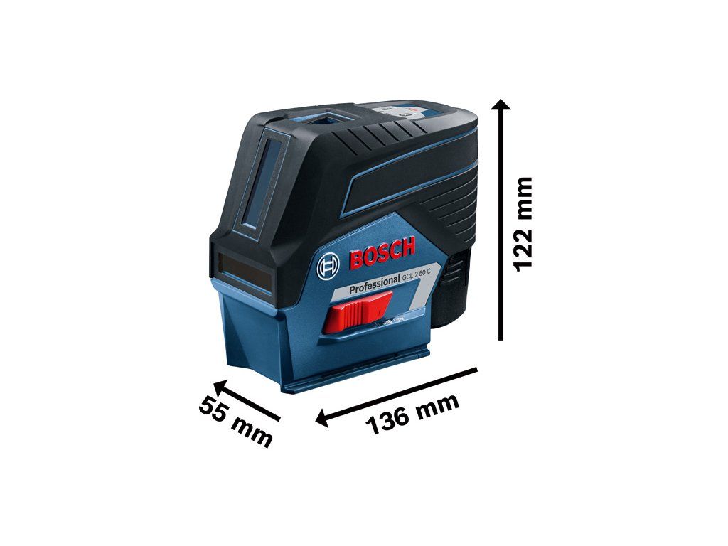 Kombinovaný laser GCL 2-50 C, Kombinovaný laser GCL 2-50 C Professional nabízí řadu chytrých funkcí pro maximální efektivitu. Připojení přes Bluetooth® umožňuje vzdálené ovládání pomocí aplikace v chytrém telefonu a duální zdroj napájení umožňuje použití 12V Li-ion akumulátoru či standardní alkalických baterií pro ještě větší flexibilitu. Pro přesné polohování vzhledem ke kolmým bodům je volitelný RM 3 Professional vybaven motorkem a RM 2 Professional umožňuje ruční nastavení. Je určen pro horizontální a vertikální nivelaci s velkým rozsahem téměř 360° a je vhodný pro projekty, jako je konstrukce sádrokartonové stěny či dokončovací práce v interiéru. Horizontální a vertikální laserové čáry GCL 2-50 C Professional a dva vystředěné kolmé body zajišťují optimální viditelnost až na 20 m bez přijímače a 50 m s přijímačem. Adaptér na alkalické baterie AA1 (1 608 M00 C1B); Cílová destička laseru; Ochranné pouzdro; Otočný držák RM 2 Professional (0 601 092 700); 4× baterie 1,5 V LR6 (AA)Doplňkové parametry