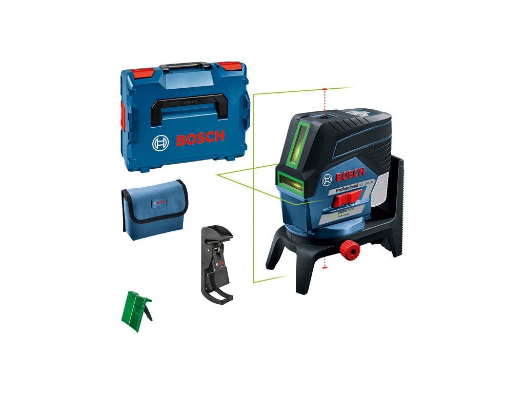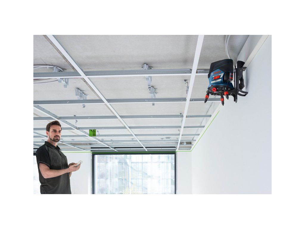 Kombinovaný laser GCL 2-50 CG, Kombinovaný laser GCL 2-50 CG Professional nabízí vynikající viditelnost a řadu chytrých funkcí. Jasně zelené horizontální a vertikální laserové čáry a dva vystředěné kolmé body zajišťují optimální viditelnost, připojení přes Bluetooth® zase umožňuje vzdálené ovládání přes aplikaci v chytrém telefonu. Duální zdroj napájení umožňuje použití s akumulátorem 12 V Li-ion nebo alkalickými bateriemi pro výjimečnou flexibilitu. Kombinovaný laser je určen pro horizontální a vertikální nivelaci s velkým rozsahem téměř 360° a je vhodný pro projekty, jako je konstrukce sádrokartonové stěny či dokončovací práce v interiéru. GCL 2-50 CG Professional zajišťuje vysokou viditelnost až do 20 m bez přijímače a až 50 m s přijímačem. Pro přesné polohování vzhledem ke kolmým bodům je RM 3 Professional vybaven motorkem a RM 2 Professional umožňuje ruční nastavení. Svěrka na strop; Cílová destička laseru; L-BOXX 136 (1 600 A01 2G0); Ochranné pouzdro; Otočný držák RM 2 Professional (0 601 092 700)Doplňkové parametry