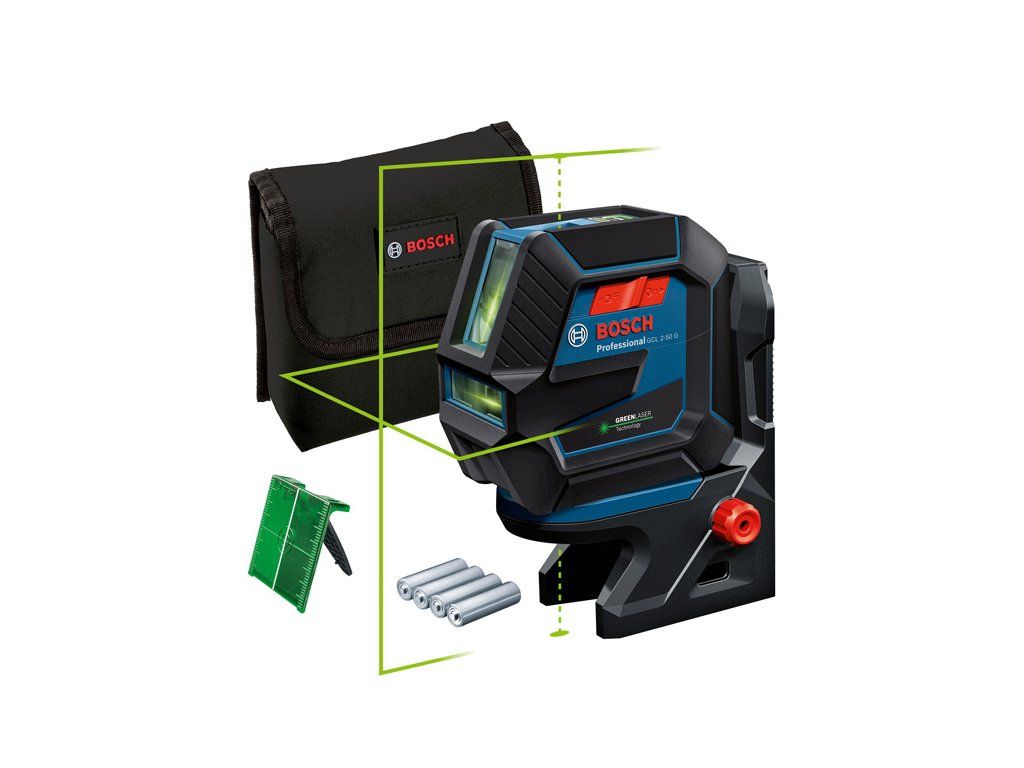 Kombinovaný laser GCL 2-50 G, Kombinovaný laser na staveniště GCL 2-50 G Professional usnadňuje zarovnávání a přenosy. Díky odolnému designu s pogumovaným krytem, který zajišťuje lepší ochranu zapuštěných skel, a stupni krytí IP 64 proti prachu a stříkající vodě je možné se stále soustředit na práci. Vypínač a jednotlačítková klávesnice usnadňují ovládání. Pro okamžitý začátek práce je u GCL stále aktivní režim příjmu laserového paprsku. Vysoce viditelné zelené laserové čáry a zelené kolmé body zaručují lepší viditelnost i v jasném prostředí. Rychlé a bezpečné upínání díky otočnému držáku RM 10 Professional s velmi silnými magnety. RM 10 Professional umožňuje přesné polohování laserových čar u kolmých bodů. Robustní GCL 2-50 G Professional je ideální na celou řadu aplikací, jako je montáž profilů na sádrokartonové stěny, montáž zásuvek a dveří a přenos bodů pro drobnější instalace. GCL 2-50 G Professional poskytuje dosah laserových čar až do 15 m (kolmé body: až do 10 m), který lze za pomoci volitelného přijímače LR 7 Professional prodloužit až na 50 m. RM 10 Professional je kompatibilní s volitelnou svorkou na strop DK 10 Professional pro použití na stropě či jemné seřizování výšky. Otočný držák RM 10 Professional (0 601 092 A00); Cílová destička laseru; Taška; 4× baterie 1,5 V LR6 (AA)Doplňkové parametry
