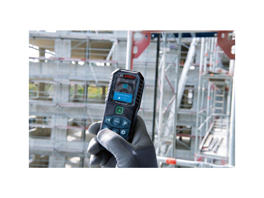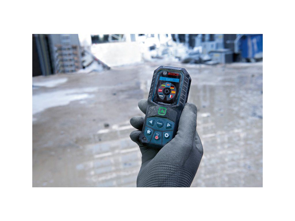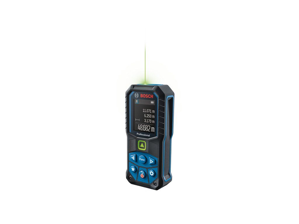 Laserový měřič vzdálenosti GLM 50-25 G, GLM 50-25 G Professional nabízí úžasnou viditelnost zeleného laserového bodu pro snazší zaměření při měření na dlouhé vzdálenosti v interiéru. Díky stupni krytí IP 65 poskytuje naprostou ochranu před prachovými částicemi a stříkající vodou. Kryt pohlcující nárazy zase zaručuje ochranu při pádu z výšky 1,5 m i na tvrdý beton. Vyznačuje se nastavitelným tlačítkem pro definici preferovaných funkcí měření nebo nastavení a vibrační odezvou na potvrzení měření. Intuitivní uživatelské rozhraní podporuje 30 jazyků a sestává z barevného displeje a režimu velkých čísel pro lepší čitelnost. Ideální na umisťování a připevňování prvků na dřevěné, klasické nebo sádrokartonové konstrukce pro elektrikáře, vzduchotechniky či instalatéry. Při dokončovacích pracích se perfektně hodí malířům, podlahářům, obkladačům a truhlářům na výpočet potřebného množství materiálu. Dlouhá doba chodu jak s alkalickými bateriemi, tak s volitelným Li-ion akumulátorem. Taška; 2× baterie 1,5 V LR6 (AA); Nosné poutkoDoplňkové parametry