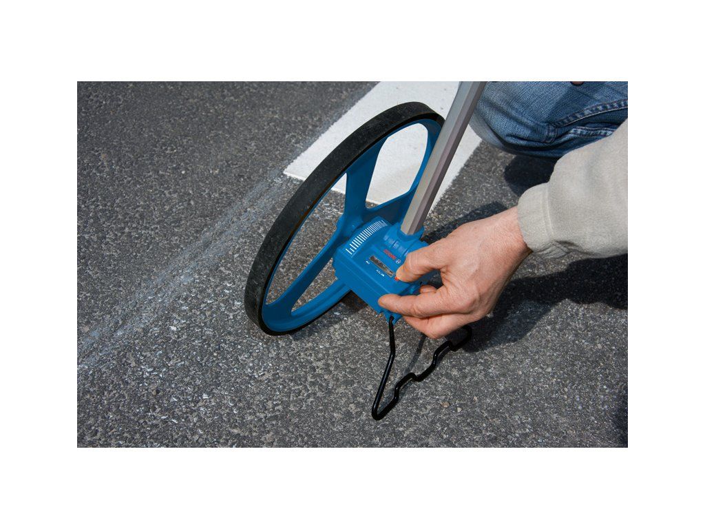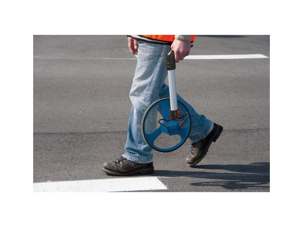 Měřicí kolečko GWM 32, Lehké a šikovné měřicí kolečko, Ergonomická pistolová rukojeť a lehké hliníkové provedení pro příjemnou práci, Teleskopická rukojeť s plynulým nastavením výšky pro větší flexibilitu a komfort, Kolečko z tlakového odlitku hliníku s robustním pogumováním pro použití na jakémkoli povrchu, Ochranné pouzdroDoplňkové parametry