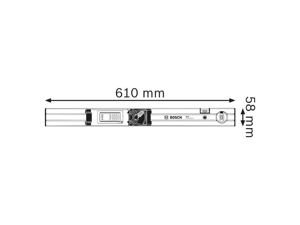 Měřicí lišta R 60, Vytváří z GLM 80 Professional digitální vodováhu, Vodovážná měřicí lišta s přesným držákem pro GLM 80 Professional, Hodí se pro GLM 80 Professional, Ochranné pouzdroDoplňkové parametry