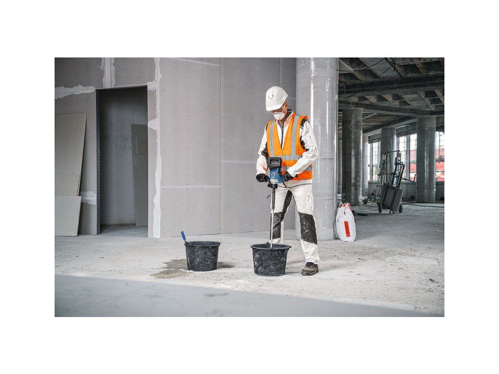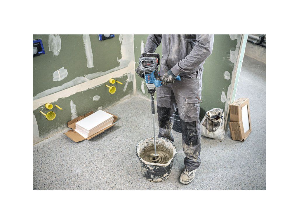 Míchadlo GRW 18V-120, Pokud potřebujete často míchat malá množství v menších kbelících, je míchačka GRW 18V-120 vhodným pomocníkem. Tato ergonomicky navržená míchačka se díky kompaktním rozměrům, vysoce nastavitelné poloze rukojeti a 13cm nástavci pohodlně používá a šetří vaše záda. Míchání bez cákanců nebylo nikdy jednodušší díky třem možnostem jemného nastavení rychlosti míchání: pomocí voliče rychlosti, přepínače rychlosti nebo pozvolného startu. Tato kompaktní alternativa velké míchačky má výkonný motor, který zajišťuje spolehlivé míchání různých materiálů. Získáte také vynikající míchací výkon, protože zvolené provozní otáčky zůstávají konstantní i při vyšším zatížení. Funkce KickBack Control navíc vypne nářadí, aby se snížilo nebezpečí náhlé reakce nářadí v případě neočekávaného zvýšení krouticího momentu. Akumulátorová míchačka Bosch GRW 18V-120 je vhodným nářadím pro sádrokartonáře a štukatéry, obkladače a malíře, zedníky a restaurátory. Tímto univerzálním nářadím můžete míchat: sádrokartonovou směs na omítání sádrokartonových a sádrových desek, lepidlo na dlaždice na stěny a podlahy, velké množství barvy na malování stěn a stropů, maltu nebo omítku na nastavování stěn a potěr na vyrovnávání podlah. Nářadí je kompatibilní se všemi míchacími lopatkami M14 o průměru až 120 mm, stejně jako se všemi 18V akumulátory Bosch a AMPShare. Prodlužovací kus M14 – 13 cm (1 619 PS1 323); 2× klíč 22/24 mm (1 619 PS1 321)Doplňkové parametry