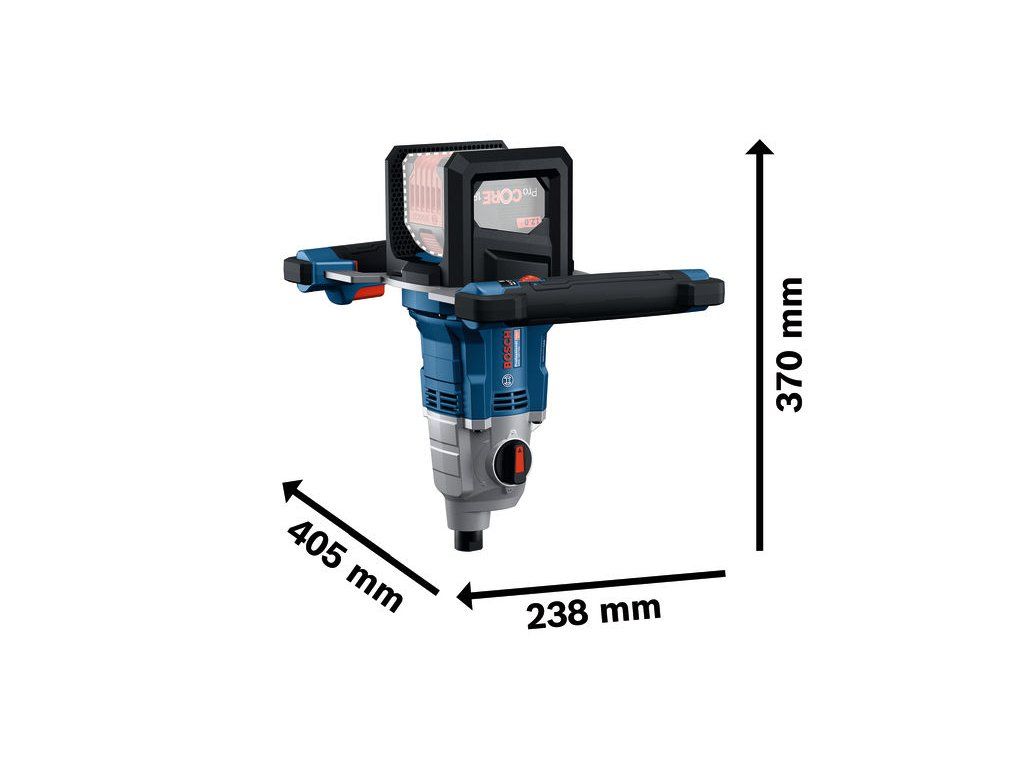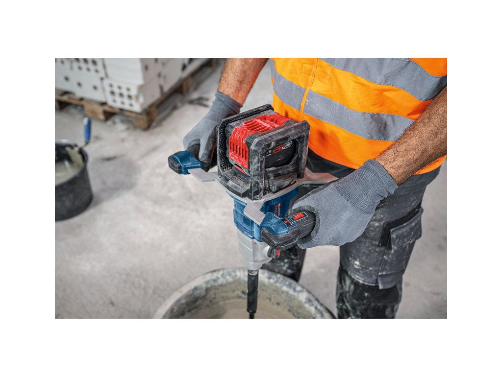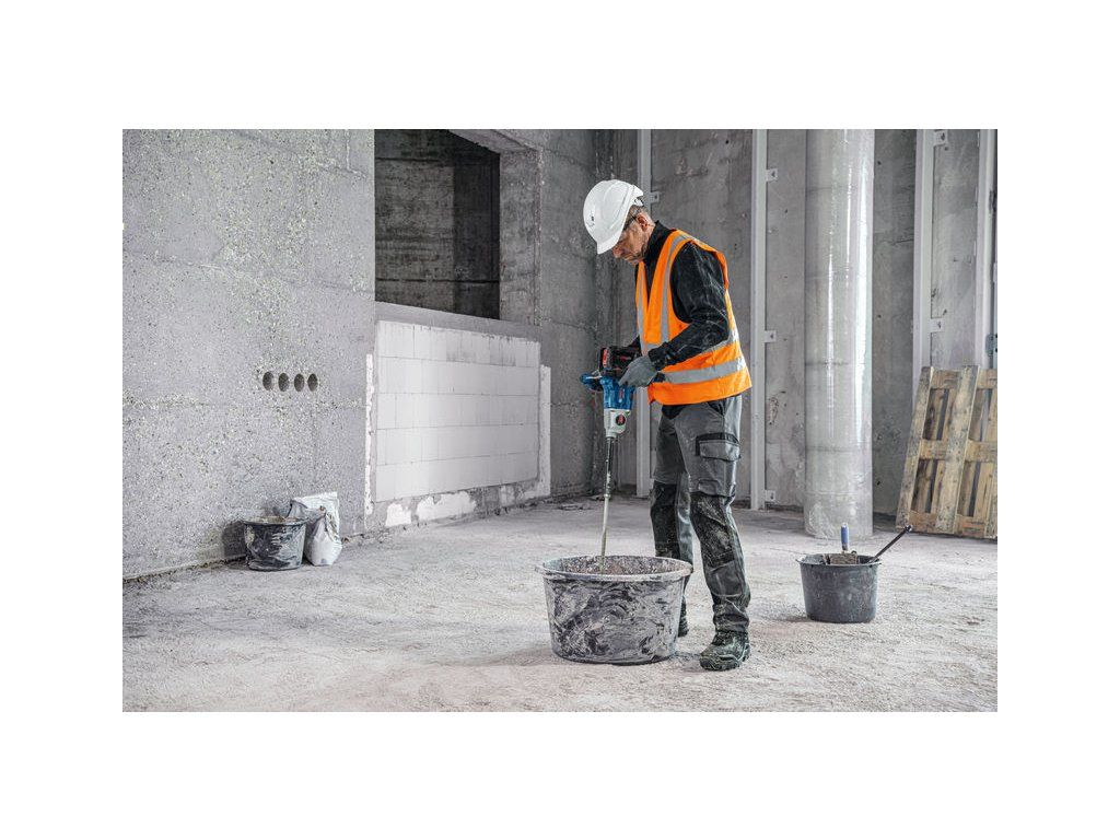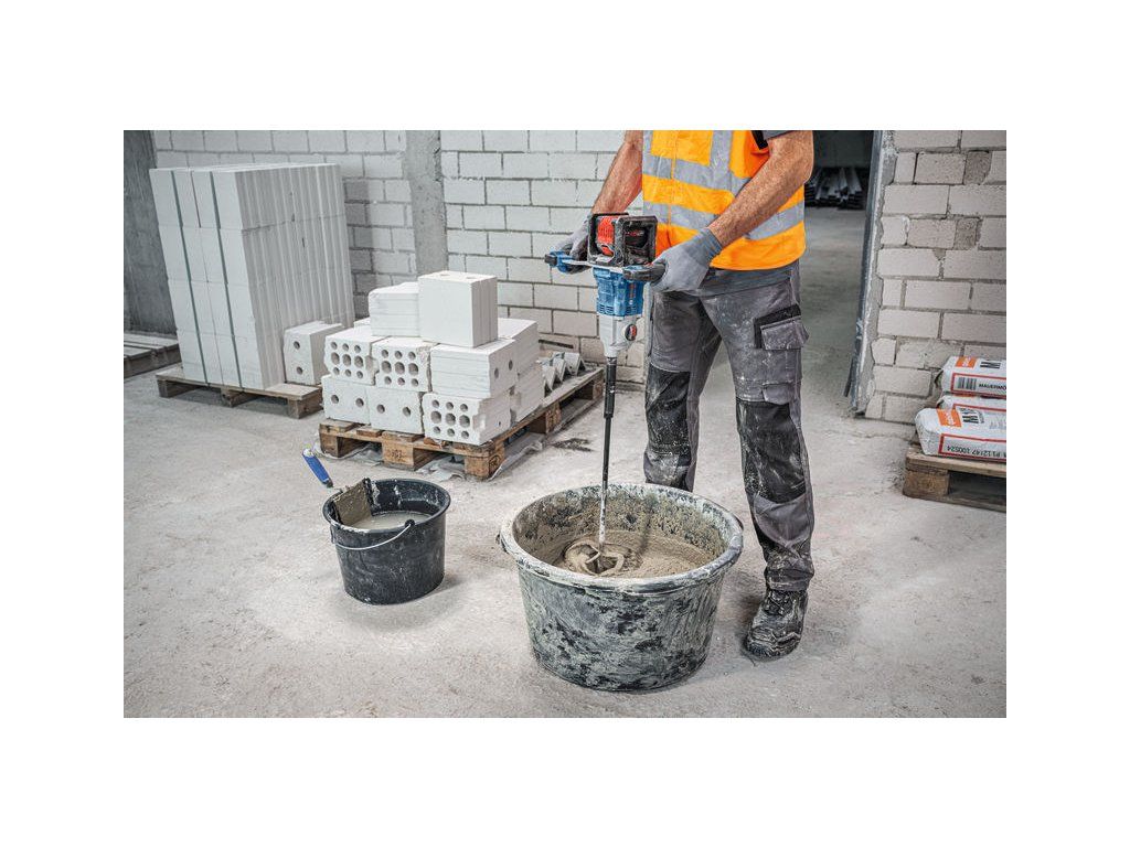 Míchadlo GRW 18V-160, Bosch GRW 18V-160 je odolné, vysoce výkonné míchadlo, které snadno zvládne všechny materiály. Míchání bez rozstřikování je s tímto nářadím snadné díky funkci pozvolného startu, spoušti s proměnlivou rychlostí, která vám dává kontrolu, a voliči rychlosti. GRW 18V-160 umožňuje míchání bez námahy – ať už je míchaný materiál tekutý, krémový nebo tvrdý beton. Díky výkonnému bezuhlíkovému motoru a dvěma převodovým stupňům můžete upravit výkon a rychlost podle svých potřeb. Rukojeť míchadla je navržena tak, aby vám pohodlně padla do rukou a zároveň je udržovala v přirozené ergonomické poloze. Je také šetrné k vašim zádům, protože nabízí pohodlnou pracovní výšku a prodlužovací díl pro vyšší uživatele. Získáte také vynikající míchací výkon, protože zvolené provozní otáčky zůstávají konstantní i při vyšším zatížení. Funkce KickBack Control navíc vypne nářadí, aby se snížilo nebezpečí náhlé reakce nářadí v případě neočekávaného zvýšení krouticího momentu. Akumulátorové výkonné míchadlo GRW 18V-160 je ideální pro zednické a restaurátorské práce, jako je míchání betonu pro betonové bednění, montované stěny a terénní úpravy. Toto všestranné nářadí můžete použít pro míchání široké škály materiálů, jako je malta pro montáž stěn, omítka pro renovační práce nebo beton pro základy budov a opravné práce. Snadno si poradí s různými konzistencemi, od tekuté po krémovou, a dokonce i s větším množstvím betonu. Nářadí je kompatibilní se všemi 18V akumulátory Bosch a AMPShare. Má robustní konstrukci s pevným kovovým rámem, vyměnitelnými gumovými nárazníky a ochranným rámem akumulátoru. Díky závitu M14 lze míchadlo použít se všemi míchacími lopatkami do 160 mm. Prodlužovací kus M14 – 7 cm (1 619 PS1 772); 2× klíč 22/24 mm (1 619 PS1 321)Doplňkové parametry