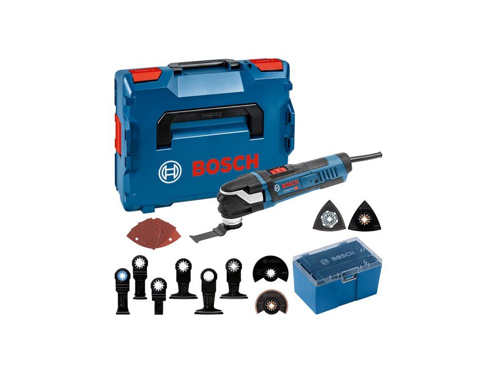 Multi-Cutter GOP 40-30, Toto síťové multifunkční nářadí je silným všestranným pomocníkem v kategorii Bosch StarlockPlus. Je vybaveno silným 400W motorem v kombinaci s vynikajícím rozhraním Starlock s optimalizovaným 3rozměrným těsně přiléhajícím spojením mezi nářadím a příslušenstvím pro nejvyšší možný přenos síly. Multifunkční nářadí má také malou ergonomickou rukojeť, která umožňuje pohodlnou manipulaci a lepší ovládání nářadí. Zacvakávací mechanismus navíc umožňuje rychlou a snadnou výměnu příslušenství. Toto nářadí je určeno k montáži dveřních rámů na nové podlahy a k demontáži oken a také k řezání trubek a hřebíků. Lze jej použít na dřevo, plast a kov. Je kompatibilní se systémy Starlock a StarlockPlus. Toto nářadí také obsahuje funkce, jako je konstantní rychlost, LED světlo, měkká rukojeť a volba rychlosti. 1× ponorný pilový list BIM Starlock AII 65 APB, Curved-Tec, Wood + Metal (2 608 661 781); 1× ponorný pilový list BIM Starlock AII 65 BSPB, Curved-Tec, Hard Wood (2 608 662 017); 1× ponorný pilový list BIM Starlock AIZ 20 AB, Wood + Metal (2 608 661 640); 1× ponorný pilový list BIM Starlock AIZ 32 APB, Wood + Metal, Curved-Tec (2 608 661 644); 1× brusná deska s karbidovými zrny Starlock AVZ 78 RT2, Grout + Abrasive (2 608 661 648); 1× segmentový pilový kotouč s karbidovými zrny Starlock ACZ 85 RT3, Grout + Abrasive (2 608 661 642); 1× BIM ponorný pilový list StarlockPlus PAII 65 APB, Curved-Tec, Wood + Metal (2 608 662 564); 1× BIM ponorný pilový list StarlockPlus PAIZ 32 APB, Curved-Tec, Wood + Metal (2 608 662 558); 1× karbidový ponorný pilový list StarlockPlus PAIZ 32 AT, Metal (2 608 662 555); 5× brusný list, K 2× 80, 2× 120, 1× 240 (2 608 621 104); 1× brusná deska delta Starlock AVZ 93 G (2 608 000 493); 1× segmentový pilový kotouč BIM Starlock ACZ 100 BB, Wood + Metal (2 608 661 633); L-BOXX 136 (1 600 A01 2G0)Doplňkové parametry
