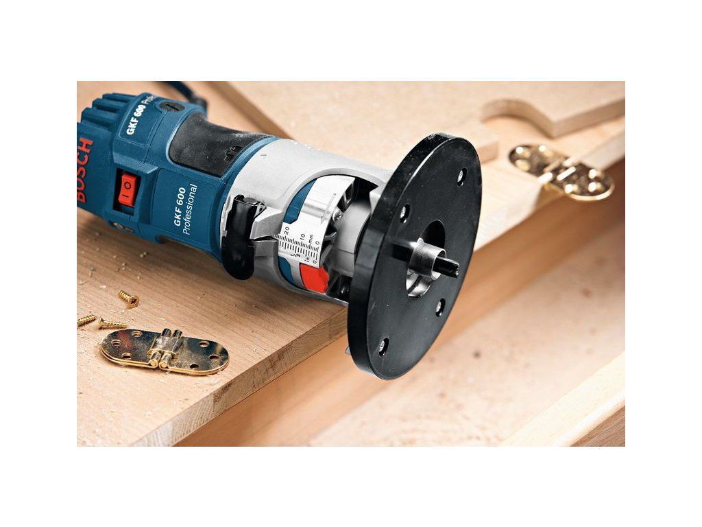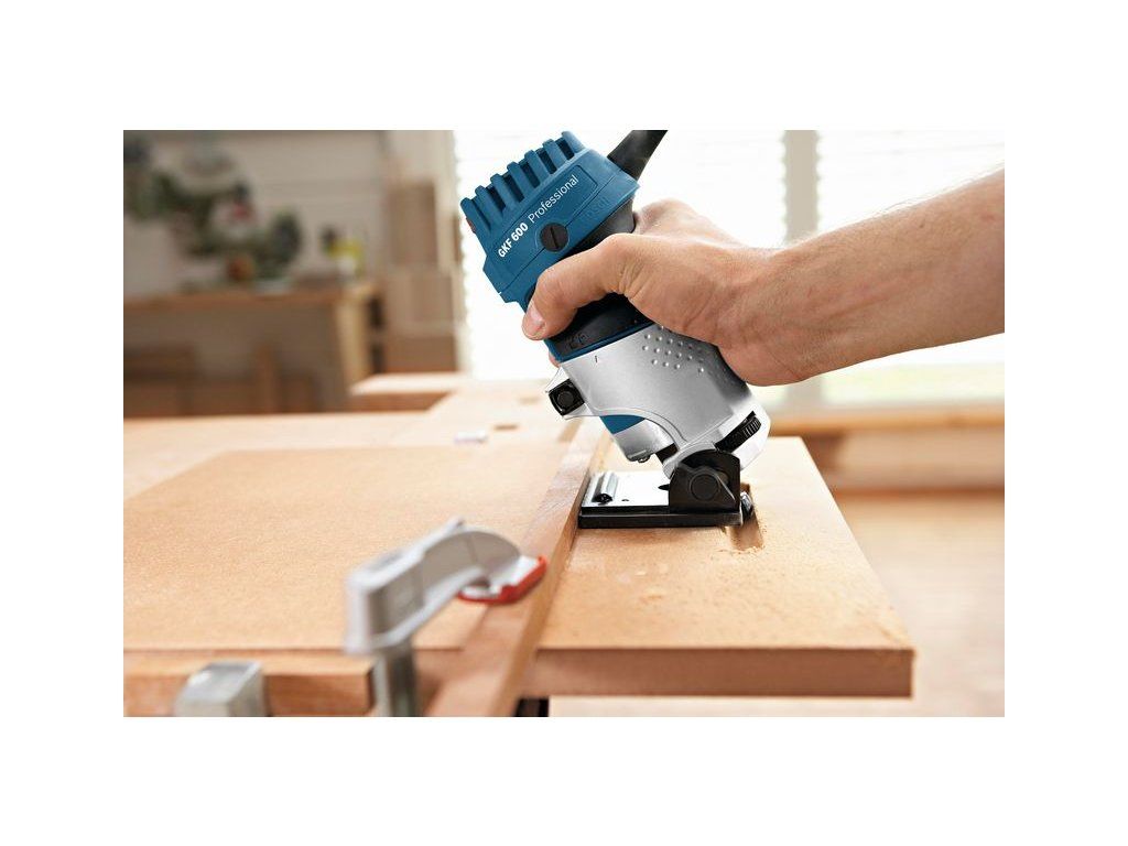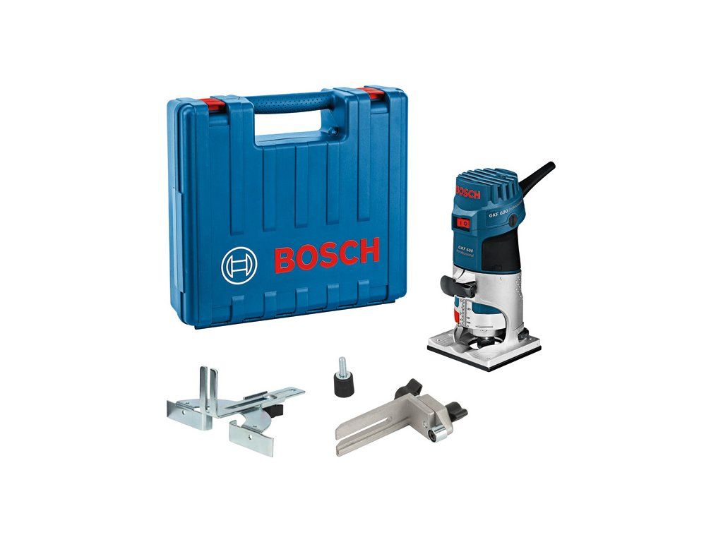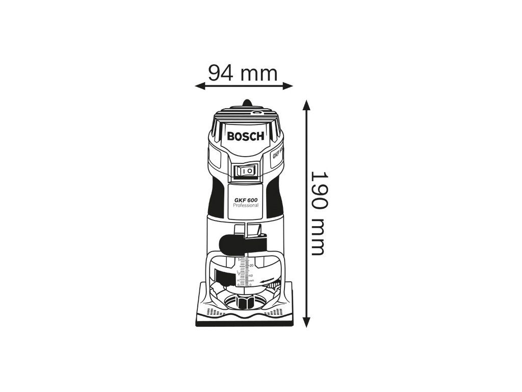 Ohraňovací frézka GKF 600, Síťová ohraňovací frézka GKF 600 Professional je praktické specializované nářadí pro přesné hrany. Vyznačuje se optimalizovaným designem těla, což z ní činí velmi kompaktní síťovou ohraňovací frézku. Variabilní nastavení hloubky frézky a její těsně přiléhající motorová jednotka umožňují jemné nastavení a zajišťují přesné a precizní výsledky. Kromě toho velké množství nástavců nabízí všestrannost pro širokou škálu aplikací. Toto nářadí je určeno k frézování do dřeva a plastu. Je kompatibilní s vodicími lištami Bosch a systémem pro odsávání prachu Bosch Click & Clean. Mezi funkce GKF 600 Professional patří aretace vřetena. Kufřík na přenášení (2 609 100 302); Vidlicový klíč 17 mm (číslo náhradního dílu 2 609 110 438); Boční doraz (2 608 000 331); Vodící pomůcka (2 608 000 332); Upínací kleština s přesuvnou maticí 6 mm (2 608 570 133); Upínací kleština s přesuvnou maticí 8 mm (2 608 570 134)Doplňkové parametry
