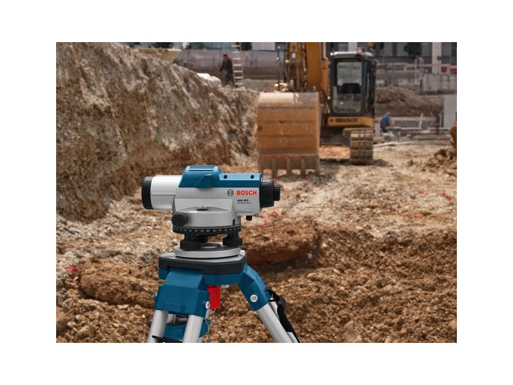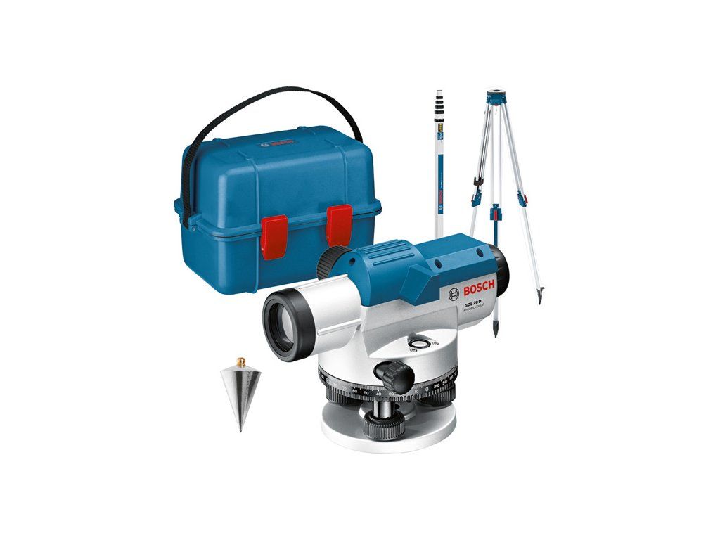 Optický nivelační přístroj GOL 20 D, Robustní a spolehlivý – optimální pro použití ve venkovním prostředí, Ideální pro použití ve venkovním prostředí díky robustnímu krytu s ochranou proti prachu a stříkající vodě (IP 54), Objektiv s vysokou světelností pro vynikající odečítání měřicí latě, Bezpečná přeprava díky zajištění kompenzátoru, Krytka čočky; Olovnice; Seřizovací kolík; Transportní kufr (1 600 A00 0LF); Stavební stativ BT 160 Professional (0 601 091 200); Měřicí lať GR 500 Professional (0 601 094 300)Doplňkové parametry