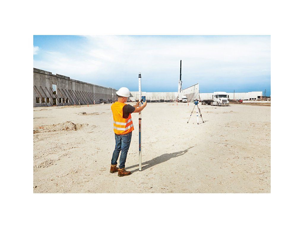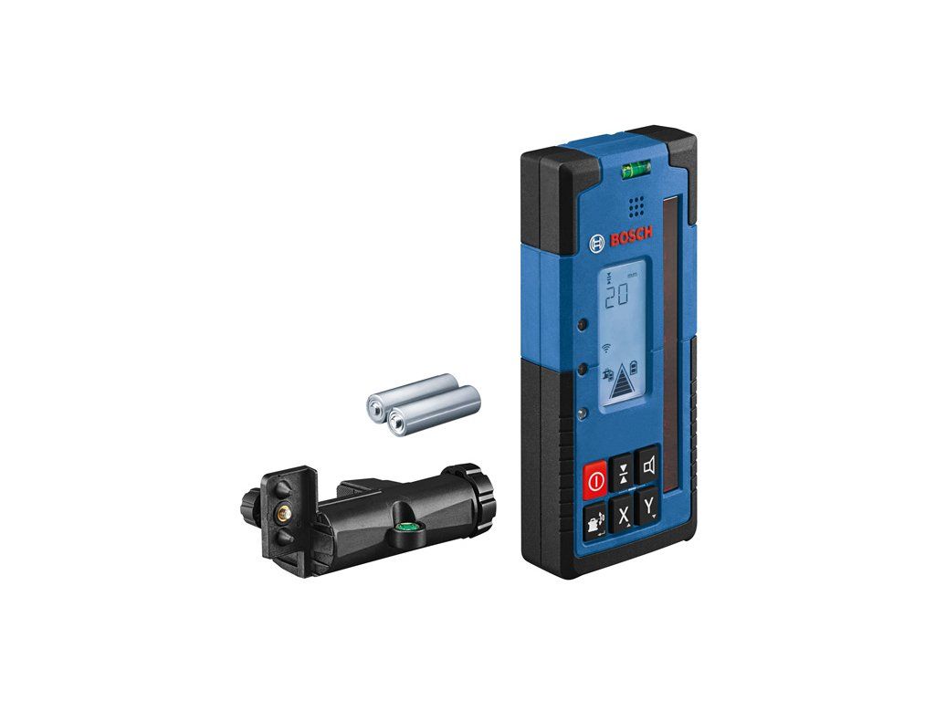 Přijímač laserového paprsku LR 60, Rychlá a snadná detekce laseru – robustní vysoce kvalitní rotační laserový přijímač LR 60 Professional je perfektním společníkem pro práci s GRL 600 CHV Professional. Dlouhé 125mm přijímací okénko a oboustranný podsvícený LCD displej s funkcí odsazení v mm usnadňuje a urychluje detekci laseru pro efektivní postup práce. Díky své robustní konstrukci s měkkým úchopem a stupněm krytí IP 67 proti prachu a vodě je vždy připraven i na ta nejdrsnější pracoviště. Komunikace s GRL 600 CHV umožňuje využívání dalších funkcí včetně uživatelské kalibrace (uCAL) a režimu středové čáry pro menší chybovost a spolehlivější výsledky. Používejte tento přijímač s GRL 600 CHV při výkopových pracích, přípravě betonového bednění, krajinářství a práci na fasádě. Laserový přijímač LR 60 rovněž umožňuje různá nastavení citlivosti a hlasitosti, a lze jej tak přizpůsobit práci v jakémkoli prostředí. Nabízí velký pracovní dosah až 300 m. Kontrolky LED přijímače a nastavitelný jas pomáhají detekovat laserový paprsek a libela zajišťuje přesné výsledky. Držák přijímače RB 60 Professional; 2× baterie 1,5 V LR6 (AA)Doplňkové parametry