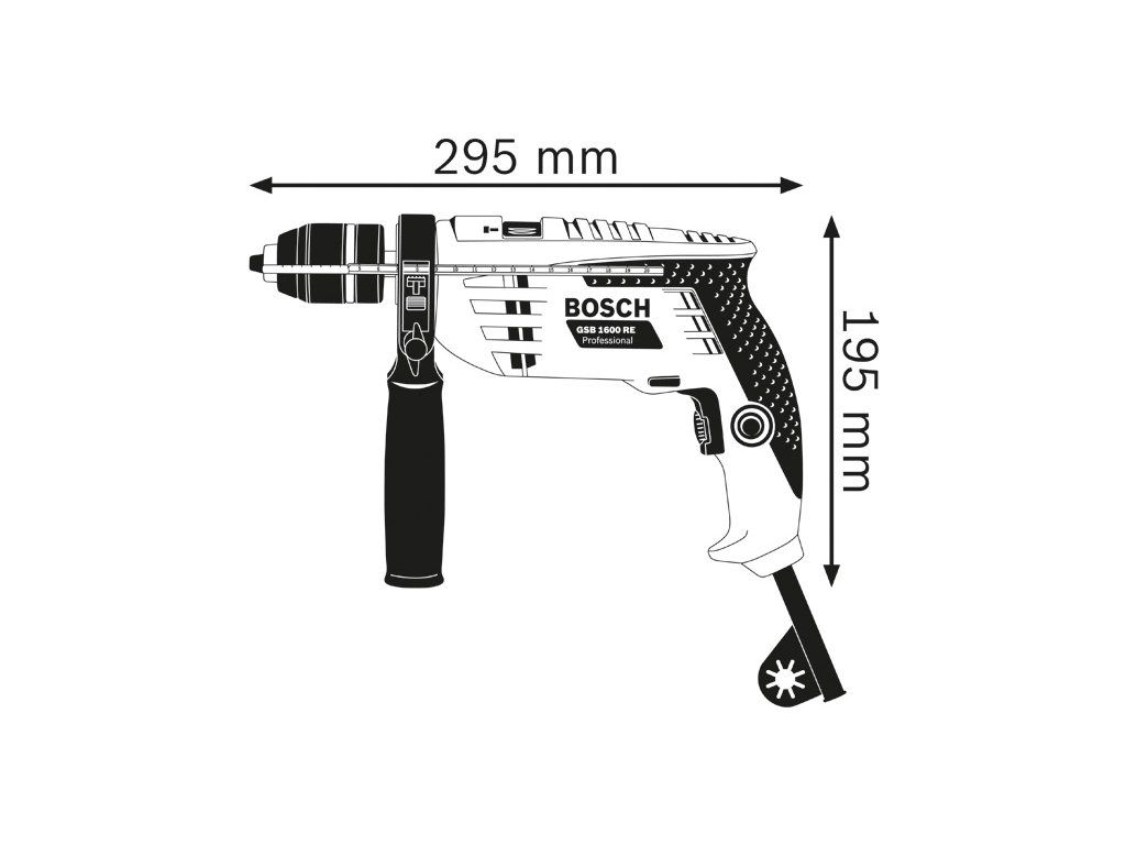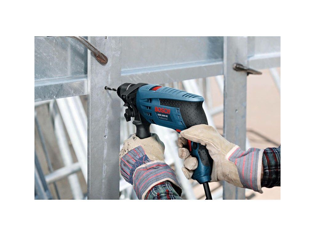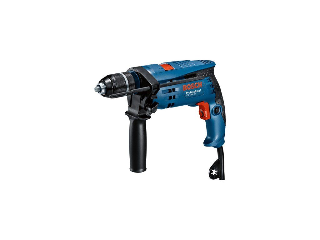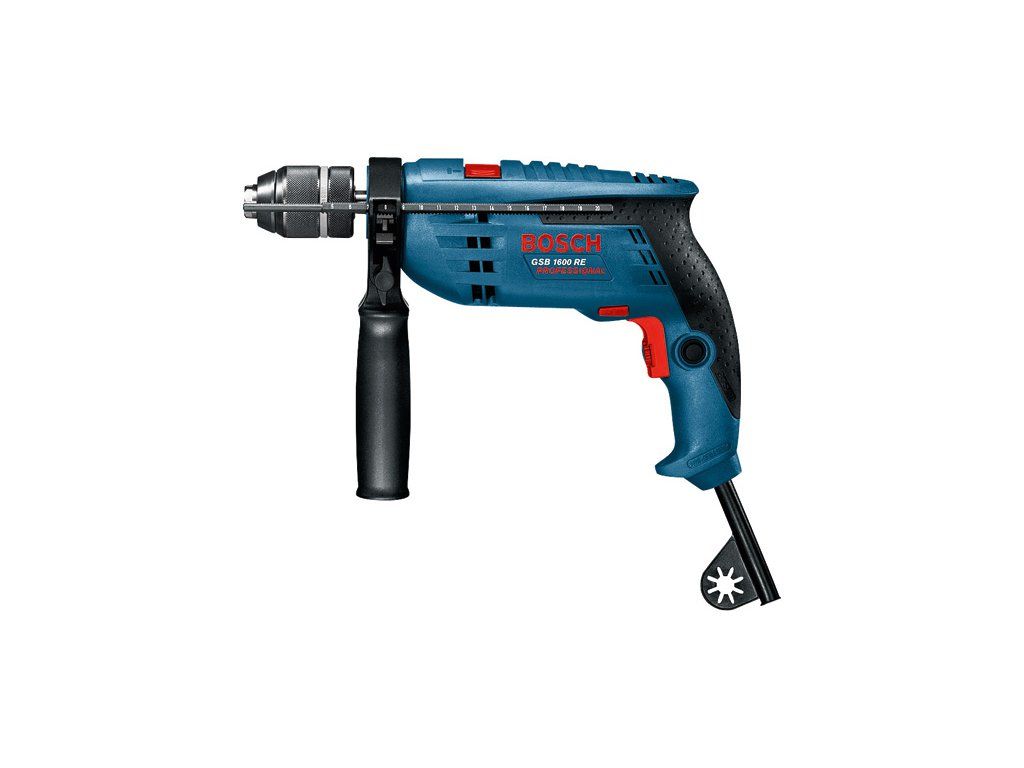Příklepová vrtačka GSB 1600 RE, Kompaktní a výkonné, Elektronické řízení pro přesné navrtání, Pravý/levý chod, Kovové rychlovýměnné sklíčidlo, Rychloupínací sklíčidlo 13 mm (2 608 572 105); Hloubkový doraz 210 mm (2 603 001 019)Doplňkové parametry