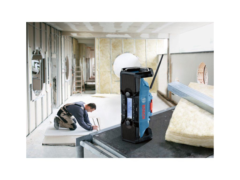 Rádio GPB 18V-2 SC, GPB 18V-2 SC Professional přináší flexibilní, přenosnou a digitální audiozábavu s příjmem DAB+ a Bluetooth®. Tato jednotka zajišťuje dokonalý hudební podkres pro příjemnou práci po celý den, a to díky své mimořádné flexibilitě a možnosti využití zdrojů DAB+, Bluetooth®, FM či AUX. Lze jej pohánět pomocí 18V akumulátorů nebo síťového proudu a umožňuje intuitivní ovládání, rychlé sestavení, nabíjení přes USB a stupeň krytí IP 54. Rádio je možné postavit svisle i vodorovně. Dále nabízí rukojeť a háček pro snadnou přepravu a uložení, které ještě více přispívají k jeho kompaktnosti. Díky možnosti spárovat dvě rádia s jedním telefonem si mohou uživatelé vychutnávat stereozvuk. Toto rádio přijímá digitální rádiový signál a přehrává hudbu z chytrého telefonu. Je kompatibilní s akumulátory Bosch Professional 18 V (1,5–8 Ah). Kompatibilní s profesionálním 18V systémem Bosch a aliancí akumulátorů různých značek AMPShare. Dva reproduktory GPB 18V-2 SC Professional s celkovým výkonem 15 W zajišťují skvělý zvuk, zatímco přídavné pasivní zářiče poskytují vylepšenou basovou odezvu. Kartonová krabice; 1× DC-in napájecí adaptér (číslo náhradního dílu 1 619 PB4 880); 1× pomocný kabel; 1× 3V lithiová knoflíková baterie CR 2032Doplňkové parametry