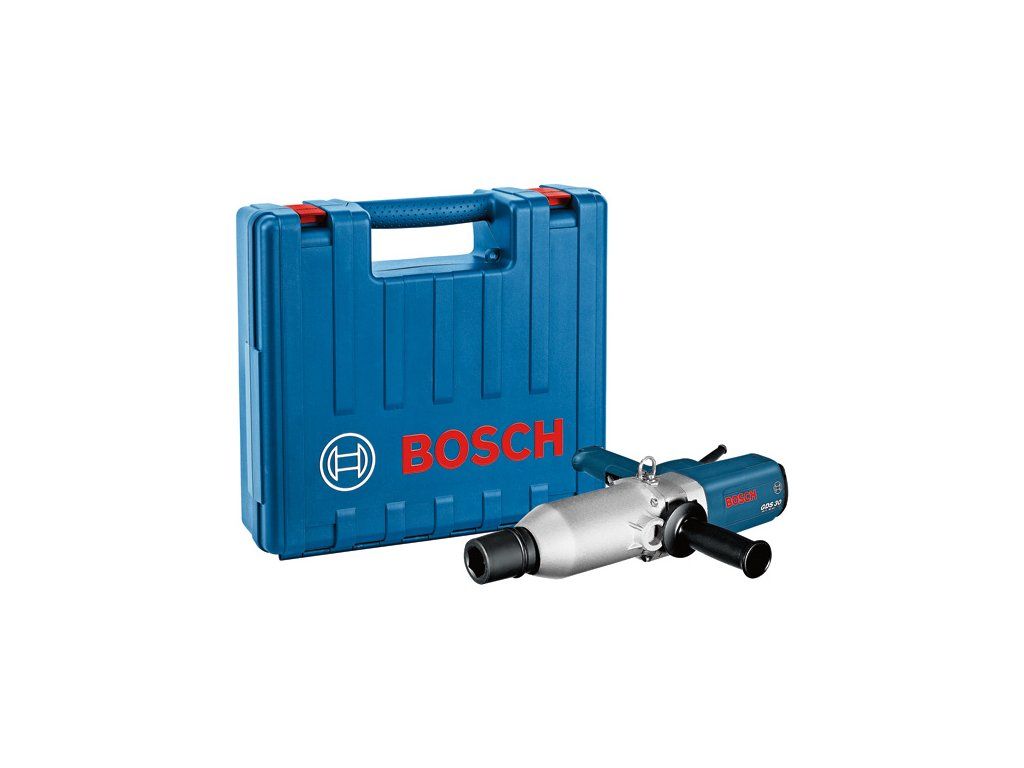 Rázový utahovák GDS 30, GDS 30 Professional je špičkový síťový rázový utahovák pro velké šroubovací práce. Jeho působivý motor o výkonu 920 W a maximální krouticí moment 1 000 Nm umožňují výkonné utahování šroubů až do průměru M30. Je také vybaven přídavnou rukojetí s opěrným talířem, kterou lze namontovat do dvou poloh pro pohodlnou manipulaci. Tento rázový utahovák má také integrovaný závěsný hák, který umožňuje připevnění k balancéru v případě potřeby. Toto nářadí je určeno na výkonné šroubování do betonu a kovu, těžkých šroubových spojů na nákladních automobilech, stavebních strojích a konstrukcích užitkových vozidel, jakož i k práci v petrochemickém a jiném těžkém průmyslu. GDS 30 Professional je také vybaven 1" externím držákem čtyřhranných bitů. Příruční kufr (číslo náhradního dílu 1 605 438 1BZ); Přídavná rukojeť (2 602 025 075); Poutko na zavěšení (číslo náhradního dílu 3 601 310 013)Doplňkové parametry