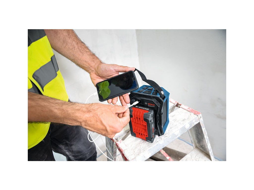 Reproduktor Bluetooth® GPB 18V-1 C, Naplňte svůj pracovní prostor dobrou atmosférou své oblíbené hudby. Náš reproduktor GPB 18V-1 C Professional Bluetooth® poskytuje vynikající kvalitu zvuku prostřednictvím rozhraní Bluetooth® nebo USB a Multi-Speaker Sound. Multi-Speaker Sound umožňuje sdílet a propojovat hudební streamy na více kompatibilních zařízeních prostřednictvím Bluetooth®. Větší flexibilitu usnadňuje kompaktní design a popruh pro přepravu a skladování reproduktoru. Tento Bluetooth reproduktor se snadno nastavuje a je vybaven praktickým nabíjecím portem USB-C® – například pro chytré telefony – a opravdu snadno se používá. Kompatibilní s profesionálním 18V systémem Bosch a aliancí akumulátorů různých značek AMPShare. Reproduktor lze napájet pomocí USB-C® napájecího zdroje s napájením (PD). Kartonová krabiceDoplňkové parametry