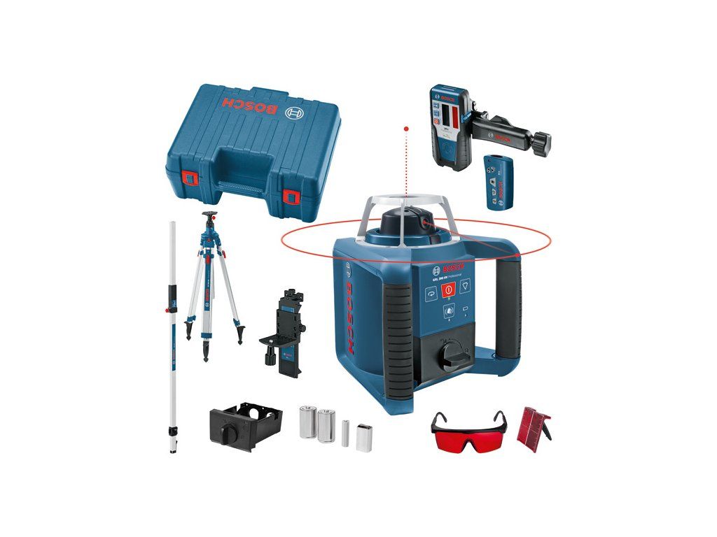 Rotační laser GRL 300 HV, Jednoduchá manipulace díky horizontální a vertikální samonivelaci, Snadná obsluha díky intuitivnímu ovládání - co tlačítko, to funkce, Rychle nastavitelný v horizontálním a vertikálním směru díky automatické samonivelaci v rozsahu 8 % (±5°), Zapínatelná funkce varování před nárazem zabraňuje nesprávné nivelaci při vibracích a otřesech, Přihrádka na akumulátor (číslo náhradního dílu 1 608 M00 05D); Stavební stativ BT 300 HD Professional (0 601 091 A00); Příruční kufr; Měřicí lať GR 240 Professional (0 601 094 100); Držák je k dispozici také samostatně jako příslušenství (číslo náhradního dílu 1 608 M00 70F); Laserový přijímač LR 1 Professional (0 601 015 400); Cílová destička laseru (červená) (číslo náhradního dílu 1 608 M00 05C); Brýle pro práci s laserem, červené, BL-GLASS (číslo náhradního dílu 1 608 M00 05B); Dálkové ovládání RC1 Professional (0 601 069 900); Univerzální držák WM 4 Professional (0 601 092 400); 1× baterie (blok) 9 V (6LR61); 2× baterie 1,5 V LR20 (D); 1× baterie 1,5 V LR6 (AA)Doplňkové parametry