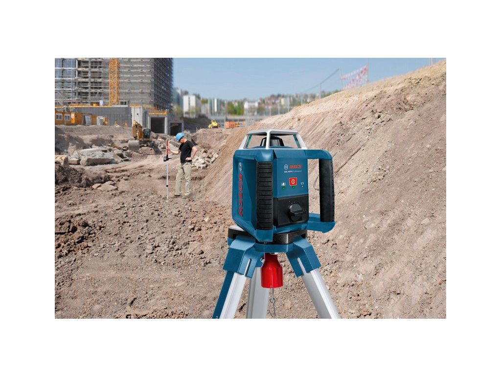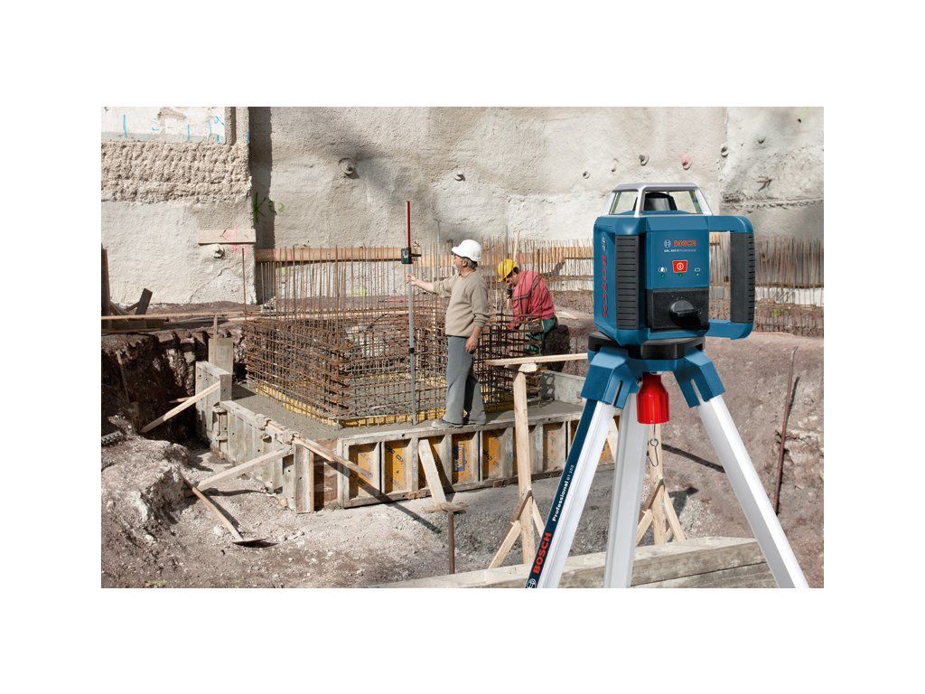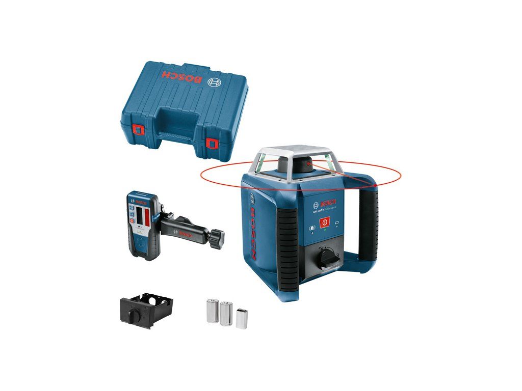 Rotační laser GRL 400 H, Jednoduché používání a připravenost k použití – intuitivní jednotlačítkový rotační laser GRL 400 H je vždy okamžitě připraven k použití při nivelacích v exteriéru. Díky jednotlačítkové klávesnici, funkci elektronické samonivelace a praktickému držáku na akumulátor umožňuje bezproblémovou práci se snadným sestavením a jednoduchou výměnou akumulátoru – i bez přesouvání nářadí. S přesností ±2,4 mm na 30 m a systémem upozornění na náraz ADS, který informuje o změně polohy nářadí, GRL 400 H předchází chybám při nivelaci a zajišťuje konzistentně přesné výsledky. Od vyměřování hodnot při provádění výkopů a základů přes nivelaci bednění až po krajinářství – toto nářadí odvádí vynikající práci. Tento rotační laser díky ochraně proti vodě a prachu IP 56 obstojí v náročných podmínkách na každém venkovním pracovišti. Laserový přijímač LR 1 Professional (0 601 015 400); Držák (1 608 M00 70F); Přihrádka na baterie (1 609 203 M02); 2× baterie 1,5 V LR20 (D); 1× baterie (blok) 9 V (6LR61); Příruční kufrDoplňkové parametry