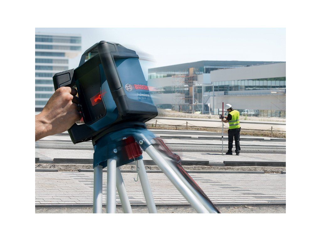 Rotační laser GRL 500 HV + LR 50, První rotační laser s ochranou proti krádeži pro všechny nivelační práce, Ochrana proti krádeži: když se GRL 500 H/HV začne během provozu bez LR 50 Professional pohybovat, spustí se alarm, Držák pro LR 50 Professional (1 608 M00 C1A); Rychlonabíječka pro EU/UK (1 608 M00 C1C); Ochranné pouzdro na LR 50 Professional; Kufr GRL 500 Professional (1 608 M00 C11)Doplňkové parametry