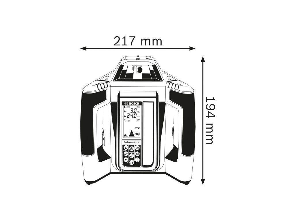 Rotační laser GRL 500 HV + LR 50, První rotační laser s ochranou proti krádeži pro všechny nivelační práce, Ochrana proti krádeži: když se GRL 500 H/HV začne během provozu bez LR 50 Professional pohybovat, spustí se alarm, Stavební stativ BT 170 HD Professional (0 601 091 300); Držák pro LR 50 Professional (1 608 M00 C1A); Měřicí lať GR 240 Professional (0 601 094 100); Rychlonabíječka pro EU/UK (1 608 M00 C1C); Ochranné pouzdro na LR 50 Professional; Kufr GRL 500 Professional (1 608 M00 C11)Doplňkové parametry