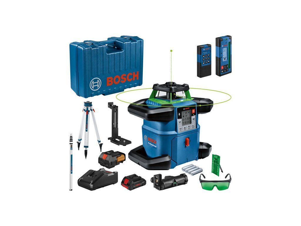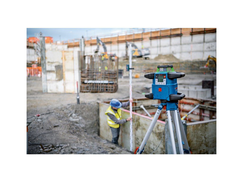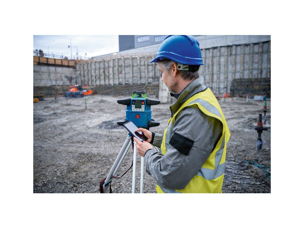 Rotační laser GRL 650 CHVG, Robustní rotační laser GRL 650 CHVG Professional s konektivitou Bluetooth® pozdvihá nivelaci na staveništi na novou úroveň přesnosti a účinnosti. Technologie zeleného laseru zajišťuje vyšší viditelnost za různých světelných podmínek. Rotační laser se pyšní odolnou konstrukcí do drsných podmínek na pracovišti i do nepříznivého počasí, ustojí převržení stativu a pád z výšky až 2 metry a vyznačuje se stupněm krytí IP68 proti prachu a vodě. Využití aplikace Levelling Remote k přehledu o nastavení a vzdálenému ovládání šetří čas a umožňuje naprosté soustředění na práci. Všestranný přístroj GRL 650 CHVG Professional se nejlépe hodí na venkovní nivelaci a stupňování, například při stavbě příček, montáži stropu a vzduchotechniky. Duální zdroj napájení zajišťuje dlouhou dobu chodu s využitím dobíjecího akumulátoru Bosch 18 V Li-ion nebo alkalických baterií D-Cell. Optimální pohodlí díky špičkovým prvkům, jako je displej, duální sklon, paměť sklonu a vysoce kvalitní přijímač (LR 65 G Professional). Laserový přijímač LR 65 G Professional (0 601 069 T00); Držák přijímače RB 60 Professional; Dálkové ovládání RC 6 Professional; 1× akumulátor ProCORE18V 4.0Ah (1 600 A01 6GB); Rychlonabíječka GAL 18V-40 Professional (1 600 A01 9RJ); Adaptér pro akumulátory BA 1; Nástěnný držák WM 6 Professional; 4× baterie 1,5 V LR20 (D); 4× baterie 1,5 V LR6 (AA); Cílová destička laseru; Brýle pro práci s laserem (zelené) (číslo náhradního dílu 1 608 M00 05J); Příruční kufr; Stavební stativ BT 170 HD Professional (0 601 091 300); Měřicí lať GR 500 Professional (0 601 094 600)Doplňkové parametry