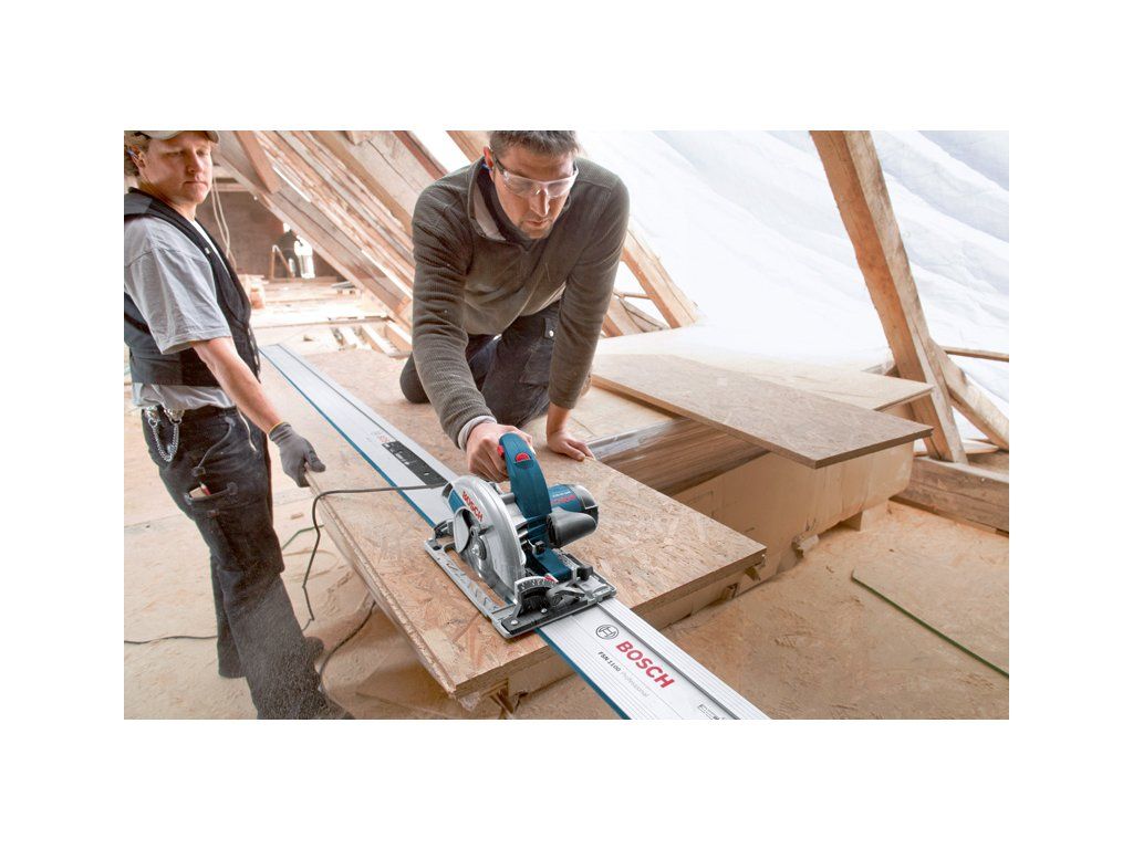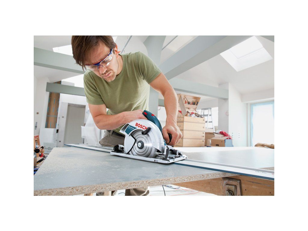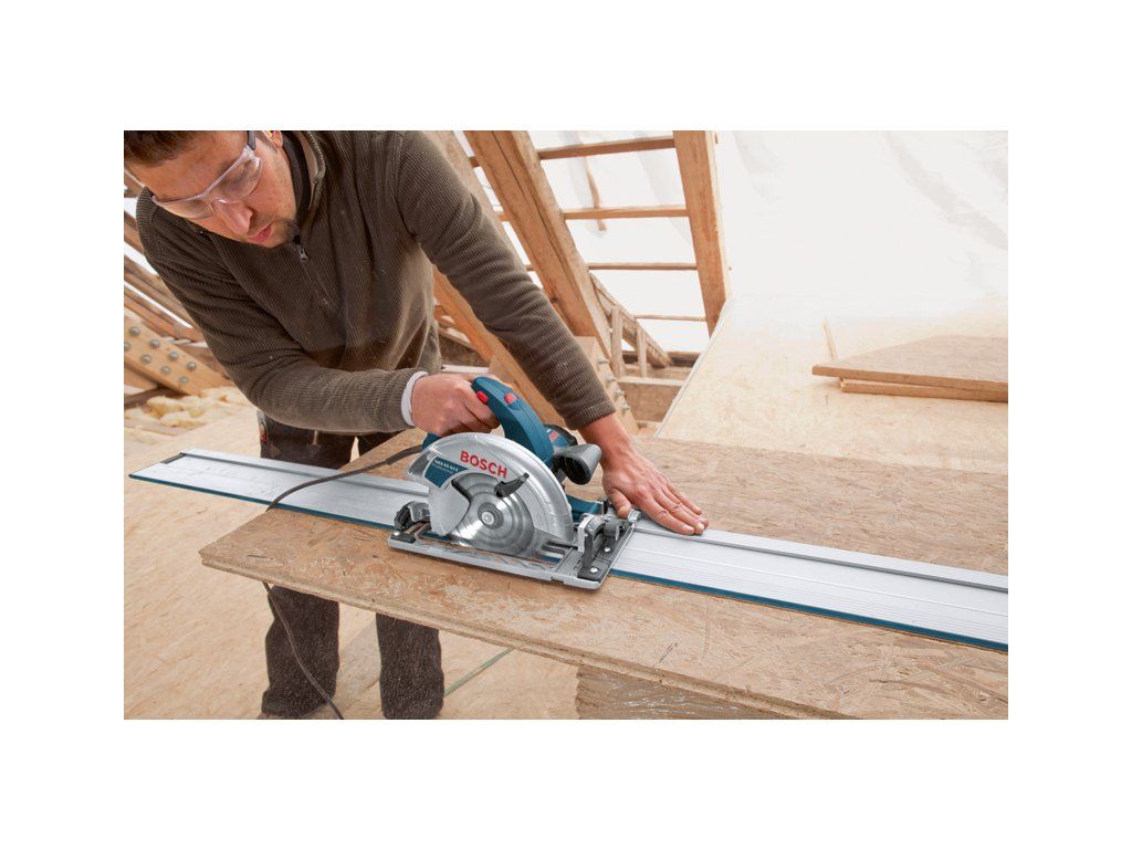 Ruční okružní pila GKS 65 GCE, Tato okružní pila je ideální volbou pro vedené řezy v široké škále materiálů. Výkonná a přesná okružní pila má 1 800W motor a dosahuje hloubky řezu 65 mm. Pro přesné řezy je optimalizovaná pro použití se systémem vodicích lišt Bosch. Díky volbě rychlosti zajišťuje rovnoměrný postup řezání v široké škále materiálů Okružní pila je speciálně navržena pro náročné úkoly a řeže různé dřevěné materiály, jako jsou OSB desky, překližka nebo dřevovláknité desky. Je kompatibilní se systémem vodicích lišt firmy Bosch i značek Mafell, Festool a Makita. Toto nářadí je vybaveno fukarem, patkou z litého hliníku, portem pro odsávání prachu, konstantními otáčkami, pozvolným rozběhem a aretací vřetena. Odsávací adaptér (číslo náhradního dílu 2 610 925 244); Klíč s vnitřním šestihranem WAF 5 (číslo náhradního dílu 1 907 950 006); L-BOXX 238 (1 600 A01 2G2); 1× kotouč do okružní pily, Optiline Wood, 190 × 30 × 2,0 mm, 16 (2 608 641 184)Doplňkové parametry