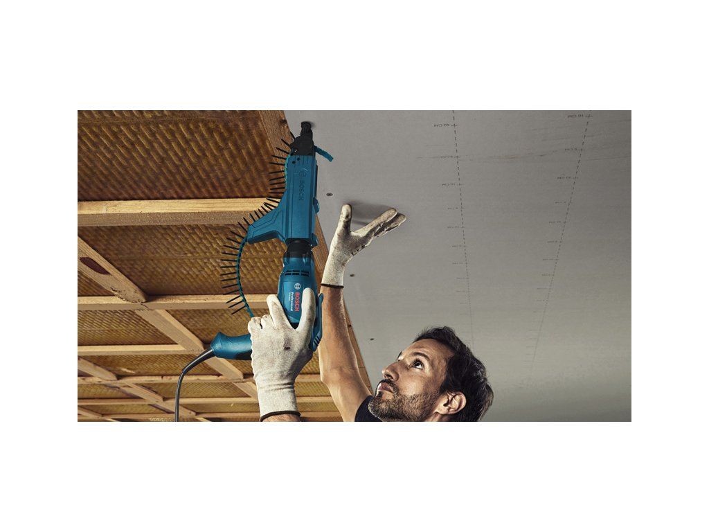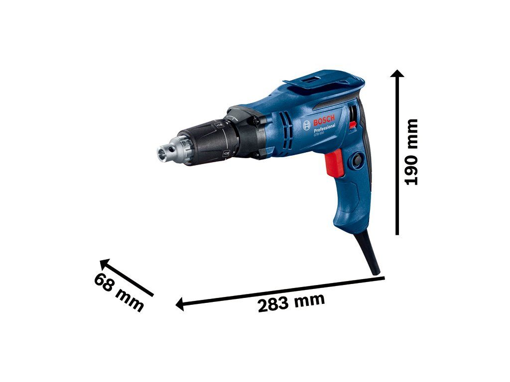 Sádrokartonářský šroubovák GTB 650, Se síťovým šroubovákem GTB 650 Professional je montáž sádrokartonových konstrukcí i práce s lehkou ocelí a plechy pohodlná, efektivní a dostupná. Tento efektivní šroubovák s motorem s 5 000 ot/min lze připojit k automatickému zásobníku na šrouby MA55 pro rychlou montáž suchých staveb. Jeho oboustranný hloubkoměr umožňuje povolování šroubů bez sejmutí hloubkoměru pro větší pohodlí a bezpečnost. Toto nářadí lze použít se šrouby až do průměru 4 mm do jedné vrstvy sádrokartonu s tenkými ocelovými profily a samořeznými šrouby až do průměru 6 mm do plechu o tloušťce 1,5 mm. Užívejte si efektivní a pohodlnou montáž sádrokartonových stěn za rozumnou cenuDoplňkové parametry